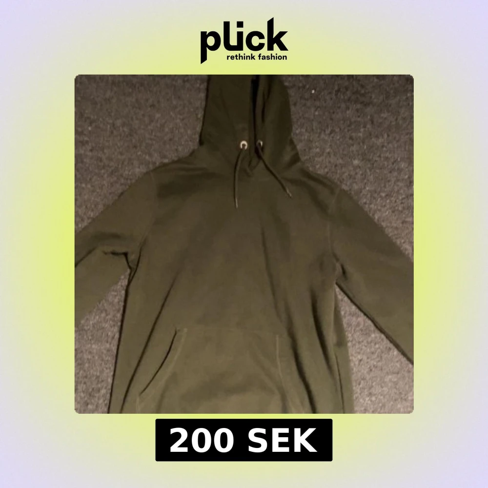 Säljer en grön hoodie från 157 i storlek S. Den har en klassisk design med dragsko i huvan och en stor ficka framtill. Perfekt för en avslappnad stil❤️