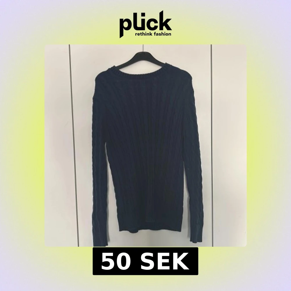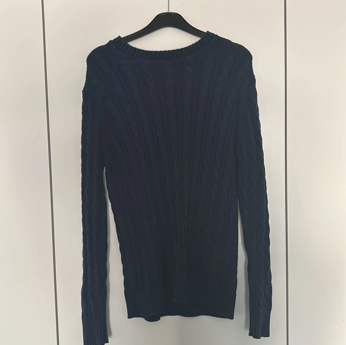 Säljer en mörkblå stickad tröja från Iconic Sport. Tröjan har en klassisk design med långa ärmar och ribbade detaljer vid hals och ärmslut. Perfekt för kyligare dagar.
