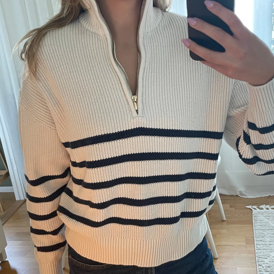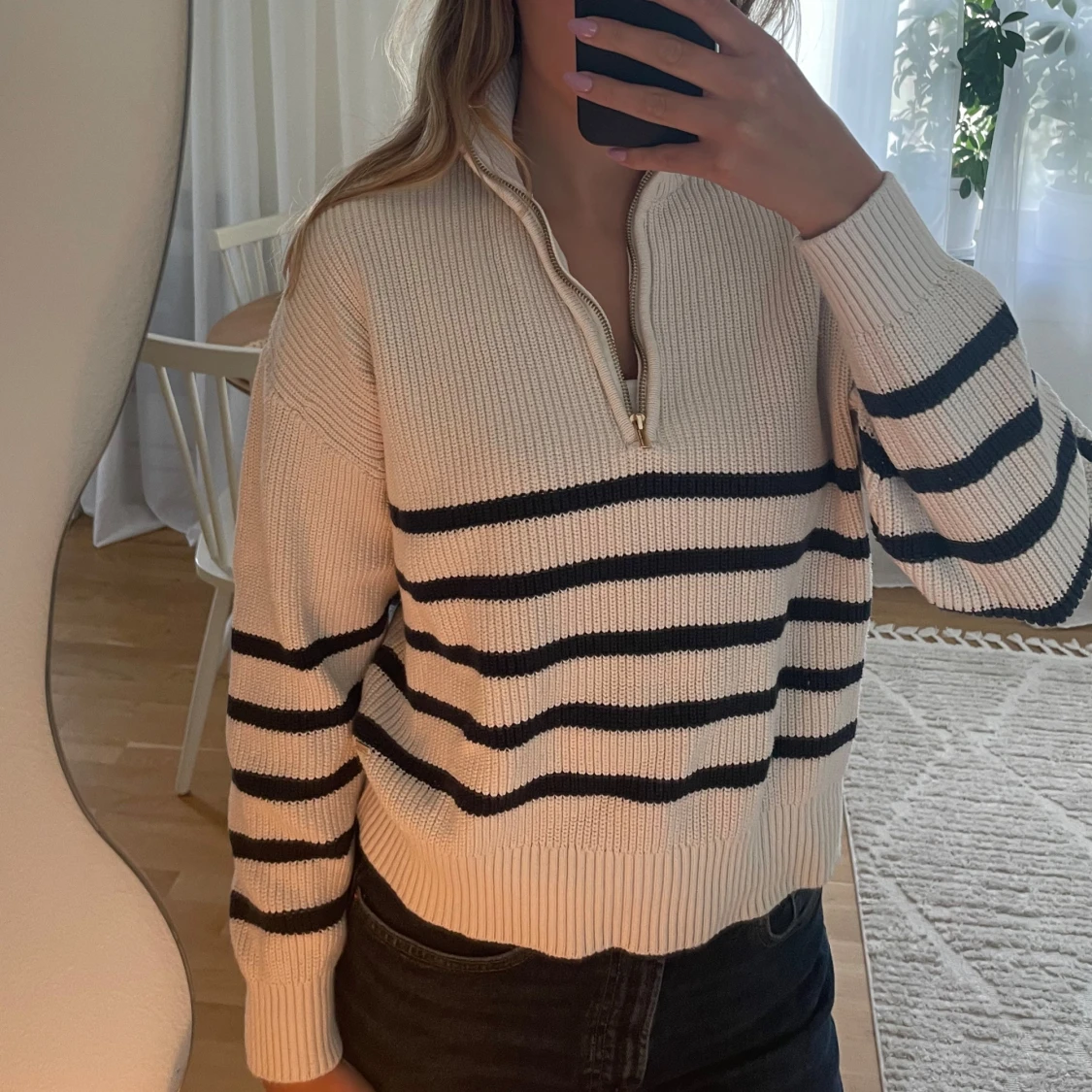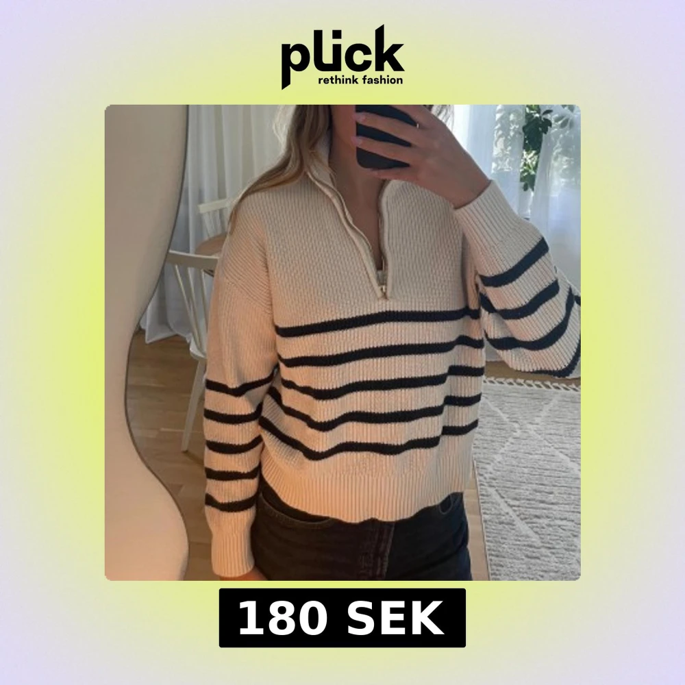 Randig stickad half zip-tröja
