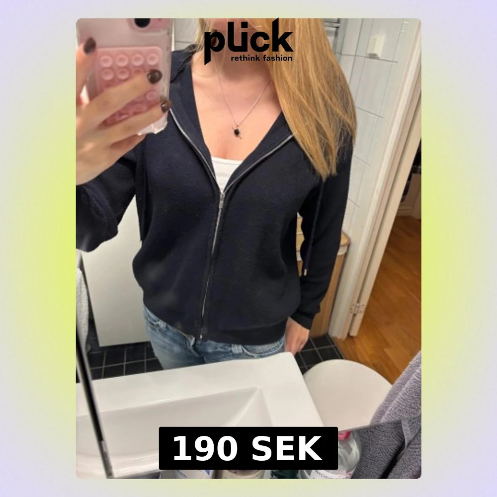 Mörkblå hoodie med dragkedja framtill och huva. Tröjan har långa ärmar och en klassisk passform. Perfekt att slänga på sig över ett linne eller t-shirt.