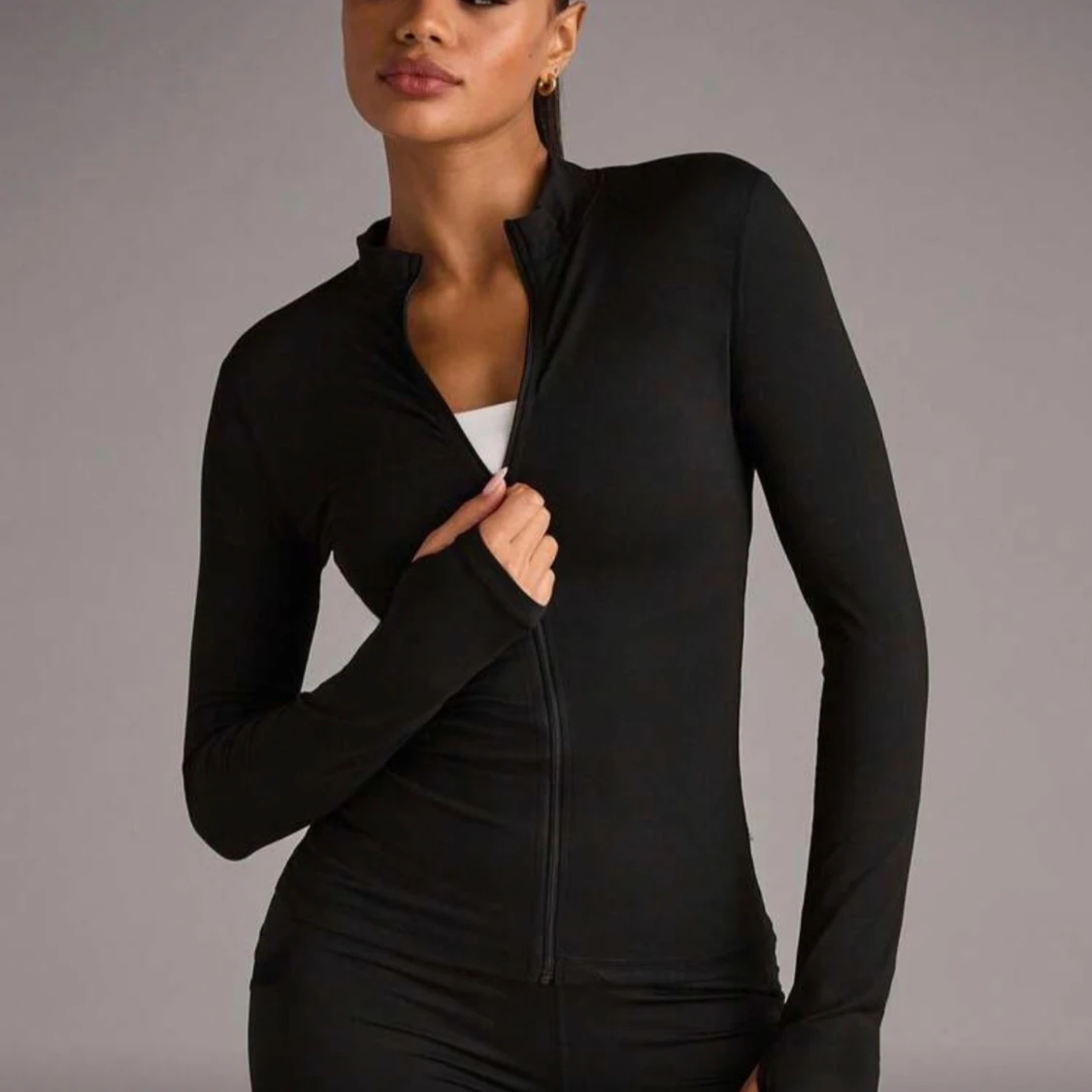 Svart långärmad träningströja med half zip och tight passform. Passar även XS