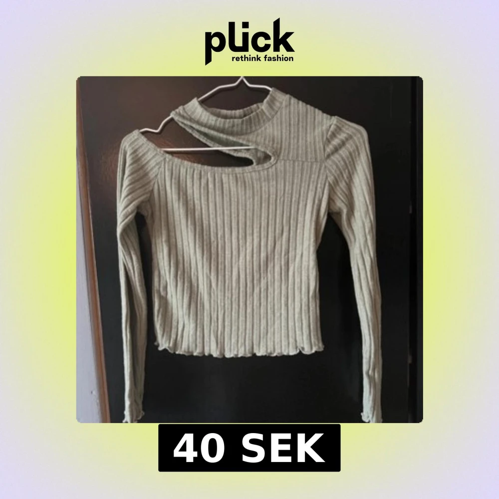 Snygg beige ribbad tröja med en unik asymmetrisk halsdesign. Tröjan har långa ärmar och en modern look som passar perfekt för höst och vår. Perfekt för dig som vill sticka ut med stil!