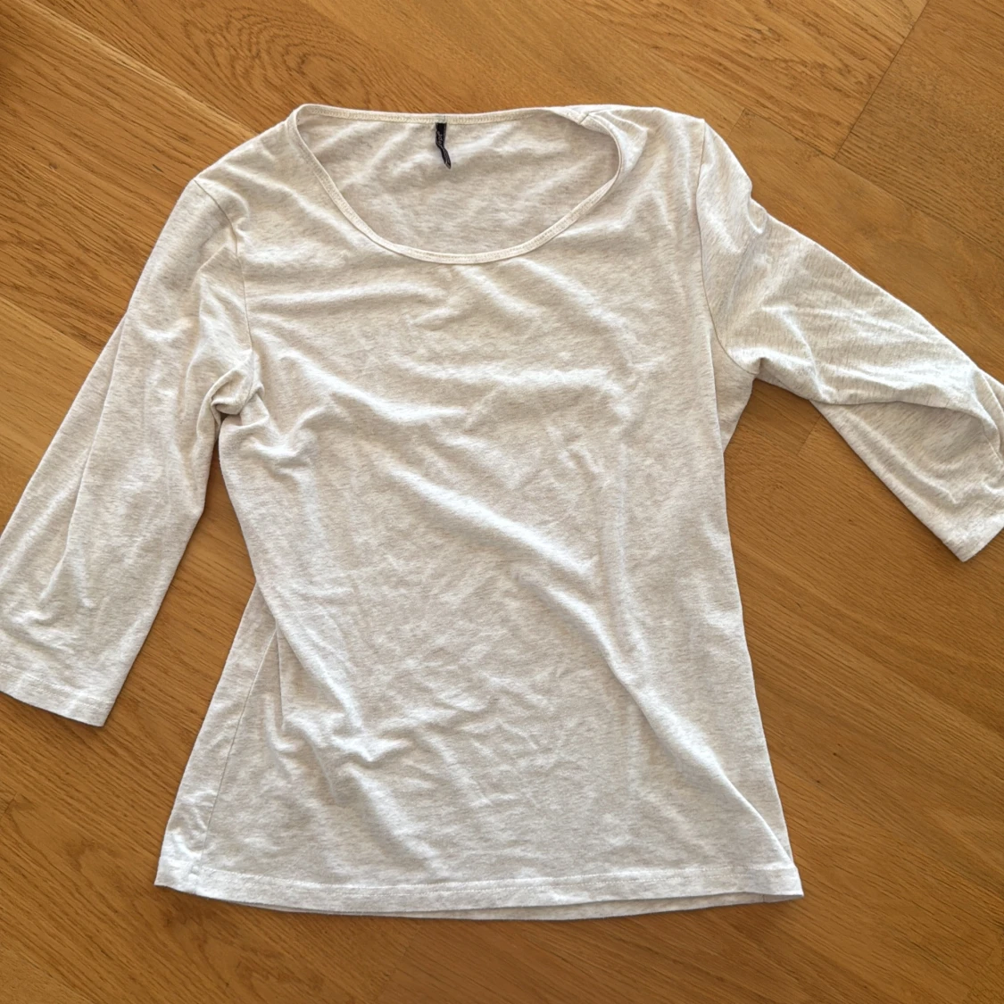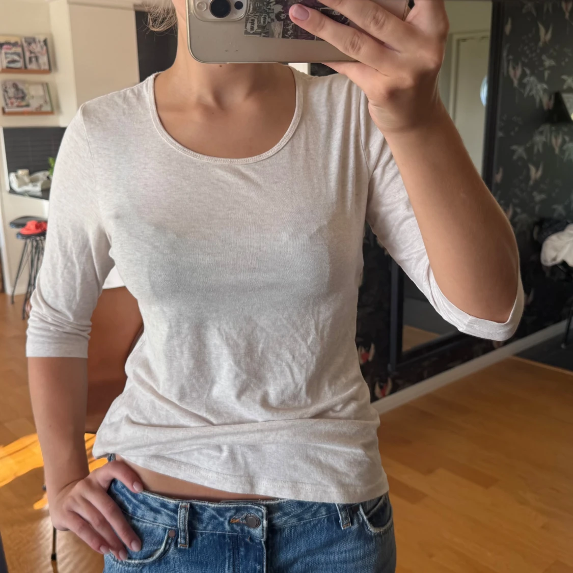 En enkel och fräsch vit topp från H&M med rund halsringning och trekvartsärm. Tillverkad i mjuk bomull som känns skön mot huden. Perfekt att matcha med jeans eller kjol för en clean och chill look.