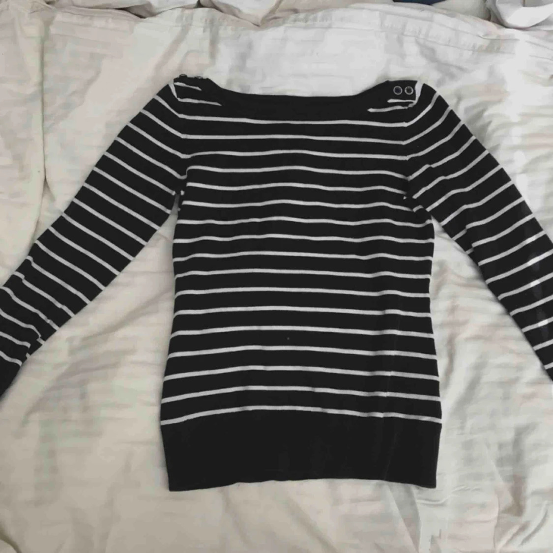 Superfin mörkblå tröja med vita ränder. Storlek S. Passar även xs ,s,m (stretchig) frakt tillkommer☺️