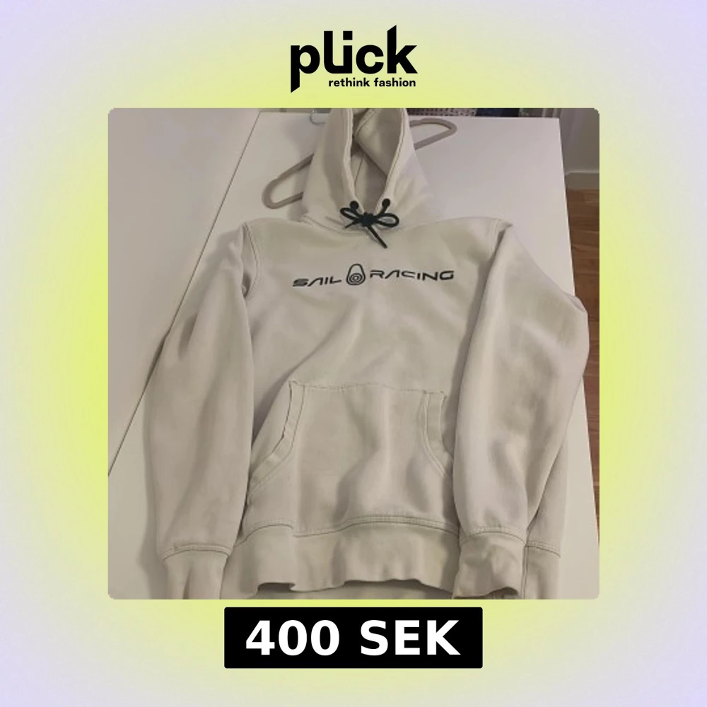 Vit hoodie från Sail Racing med svart logotyptryck på bröstet Tröjan har huva med svarta snören och en stor magficka. Mjuk insida och klassisk passform, perfekt för chill dagar.