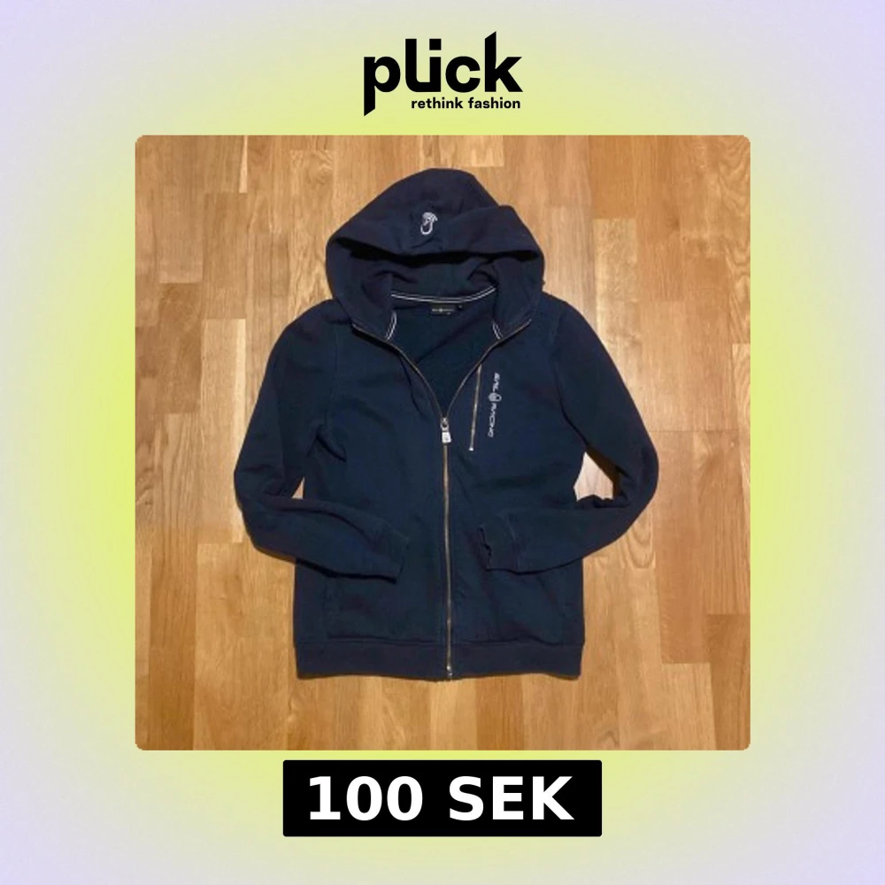 Säljer en mörkblå hoodie från Sail Racing med dragkedja och huva. Tröjan har långa ärmar och ett stilrent tryck på bröstet. Perfekt för en avslappnad stil. Hör av dig vid intresse! SE BILD 3, 4 därav priset! Den passar dig som är mellan 160-170cm