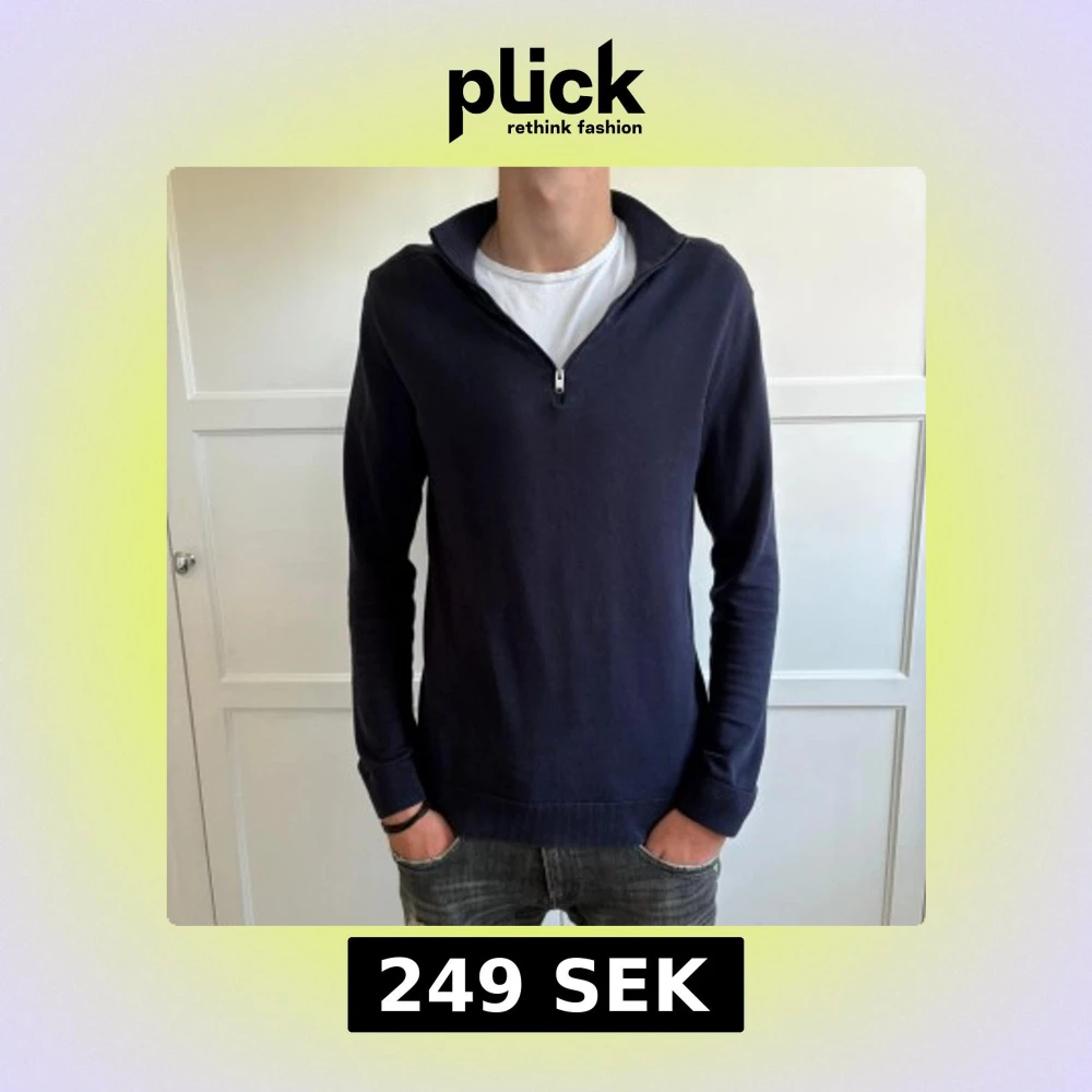 Tja! Säljer nu denna mörkblå Half zipen från Selected Home. Tröjan är i 9/10 skick och har endast en defekt (se bild). Där jag har fått sy igen ett litet hål. Förutom det så är tröjan i ett fint skick. Storleken är S och passar dig som är ca 175-185. Mitt pris är 249. Hör av dig om du har någon fråga!