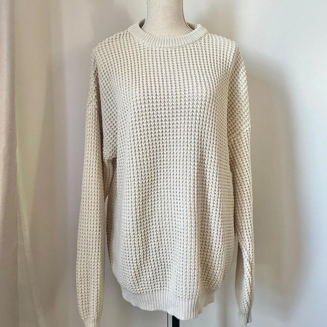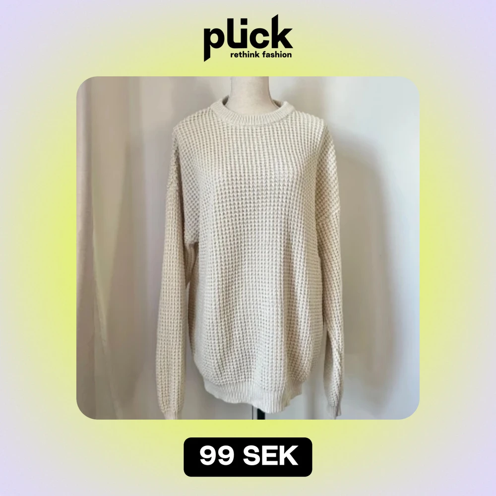 Supermysig beige stickad tröja! Storlek M, oversized i modellen. Perfekt nu i höst! 🍂 Skick: som ny :)
