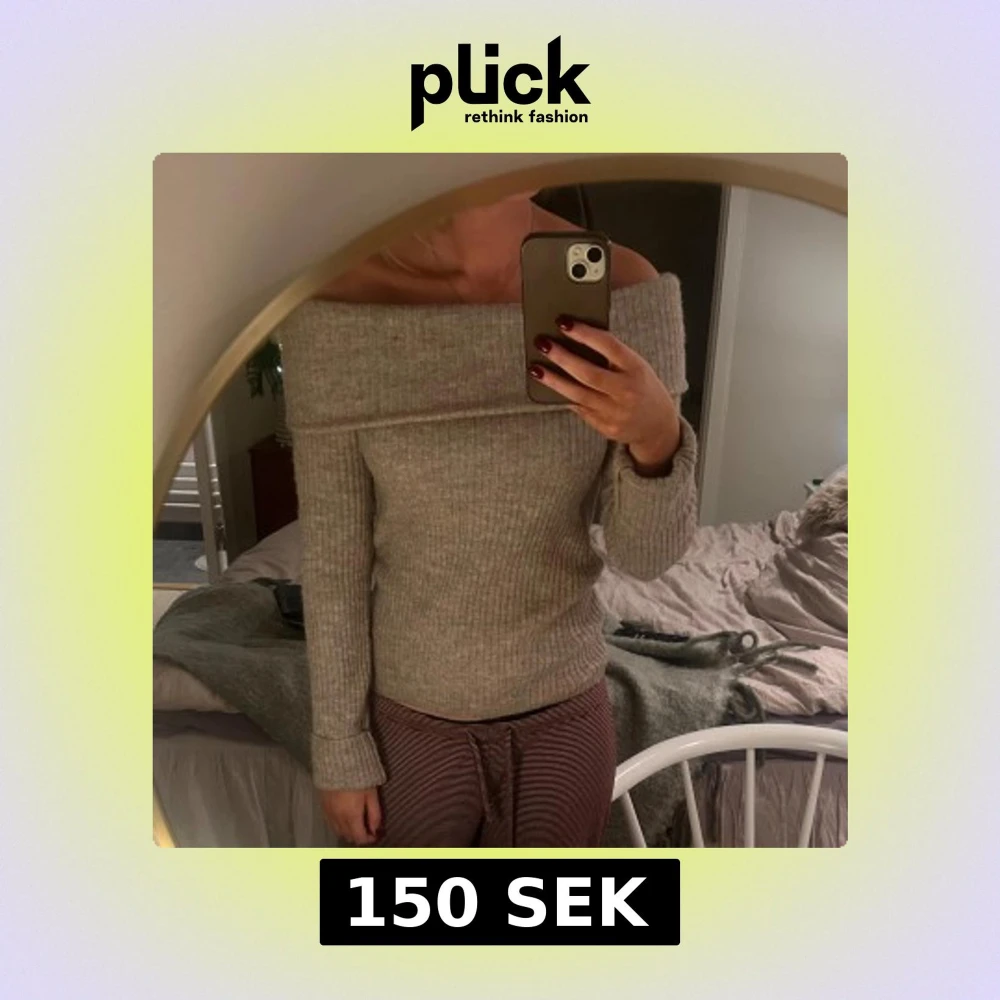 Säljer enn grå offshoulder tröja med ribbad struktur. Är i mycket fint skick