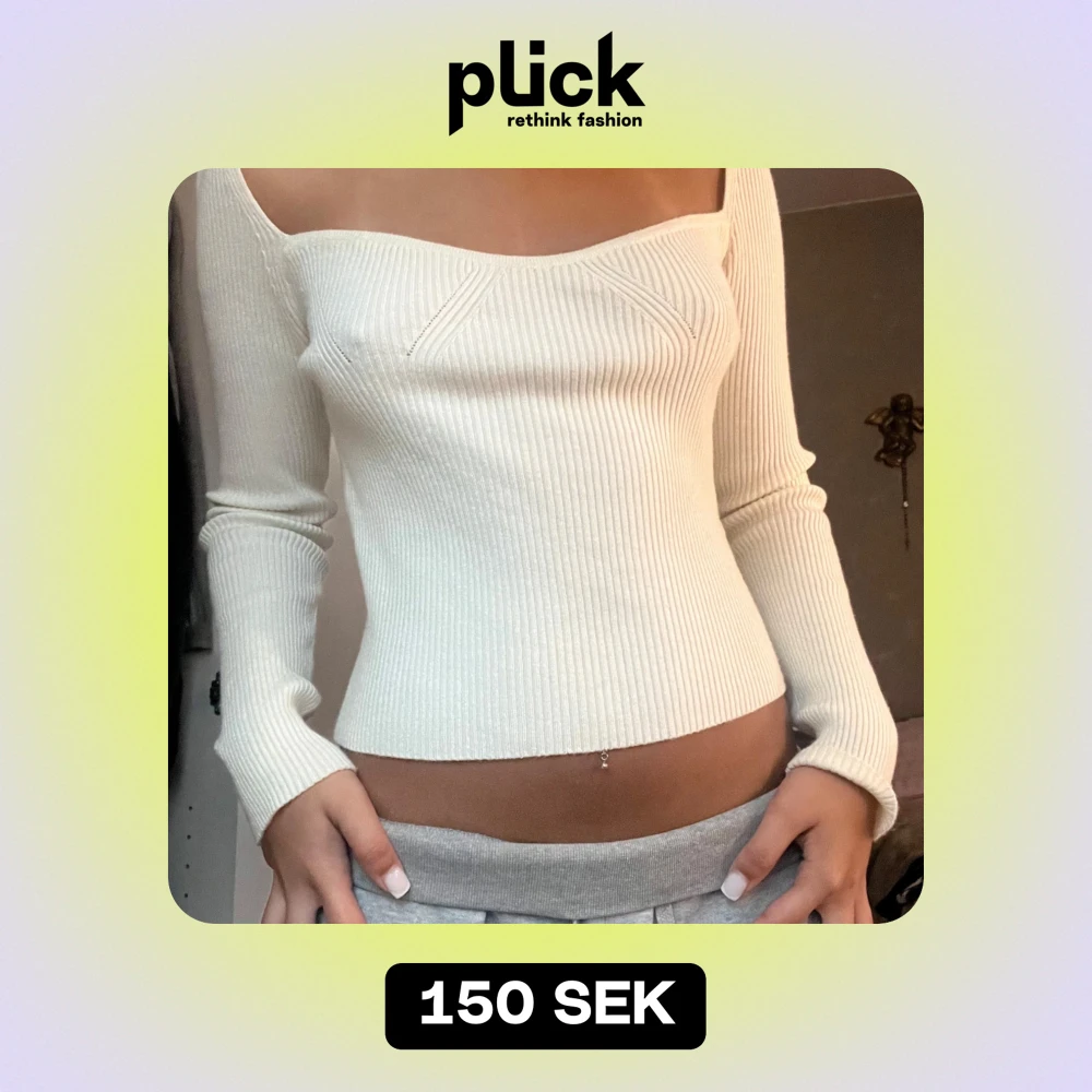 En superfin vit stickad tröja i storlek S med lång ärm och en snygg offshoulder-design. Perfekt för både vardag och fest!