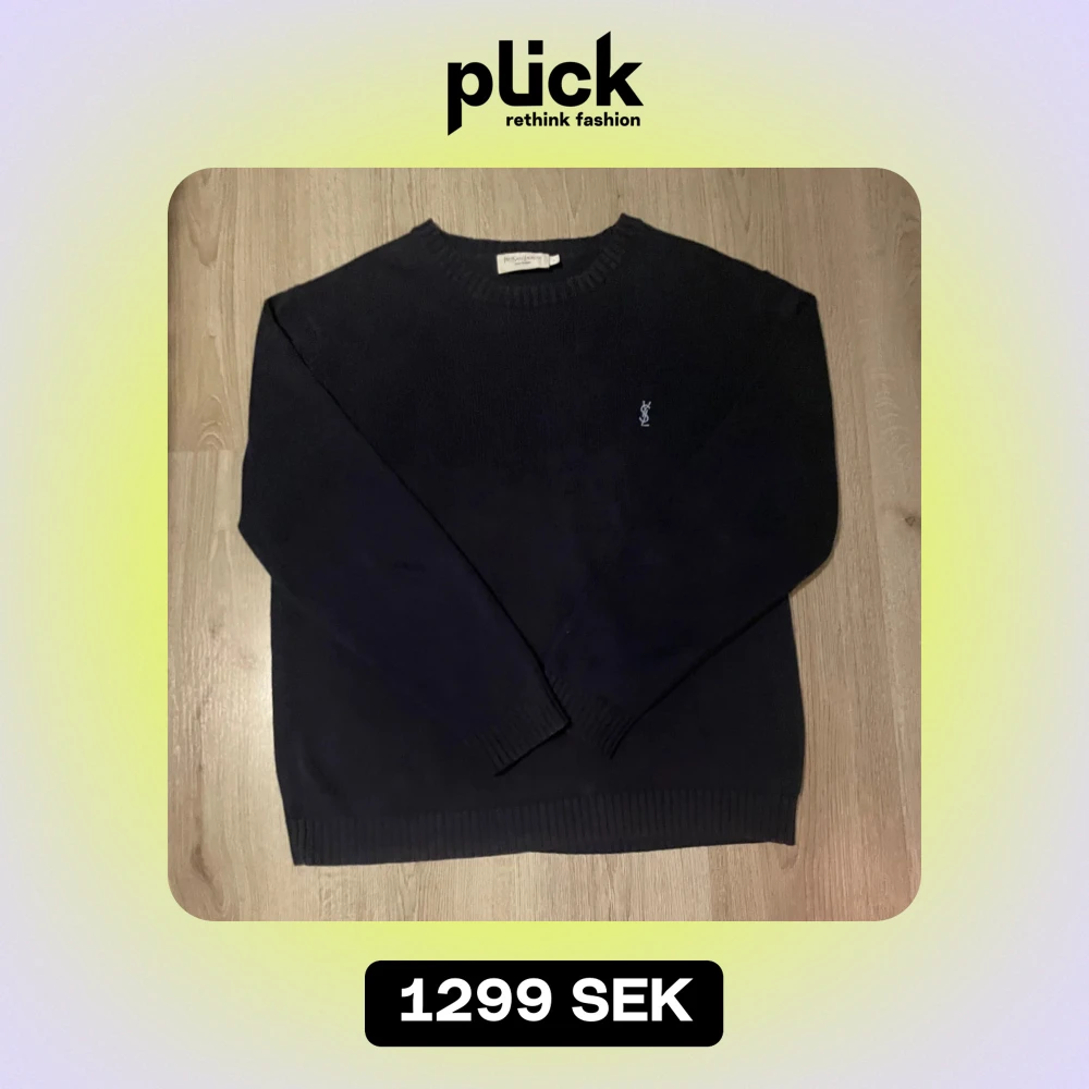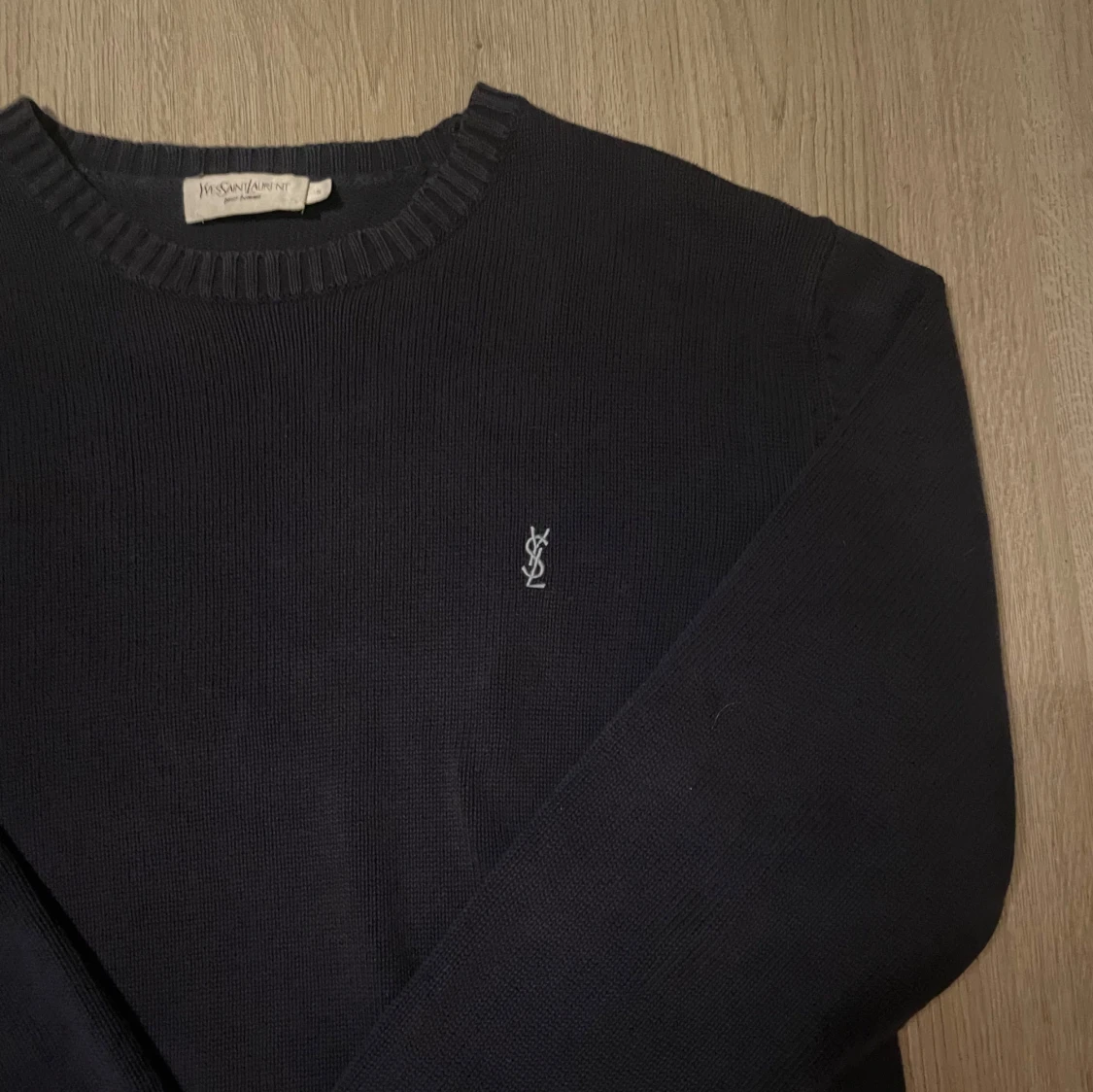 Storlek Small, men passar även size Medium. Säljer en snygg mörkblå tröja från Yves Saint Laurent i 100% bomull. Den har en liten broderad logga på bröstet och ribbade kanter vid ärmslut och nederkant. Perfekt för både höst och vinter. Passar till både vardag och fest! 💙ställ gärna frågor! Svarar alltid!