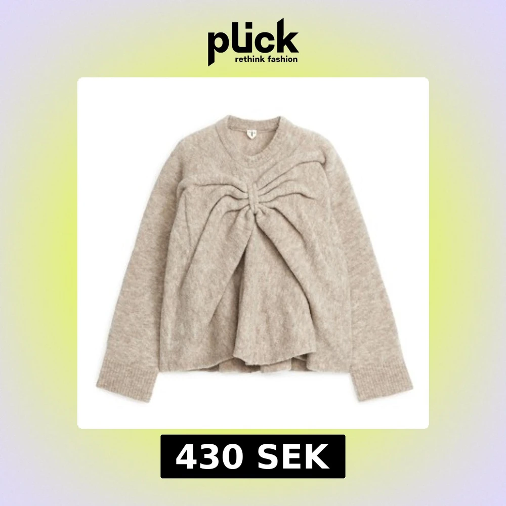 Säljer en mysig beige stickad tröja med unik rosett framtill. Köpt på arket med nypris på 990kr!💕materialet är ull