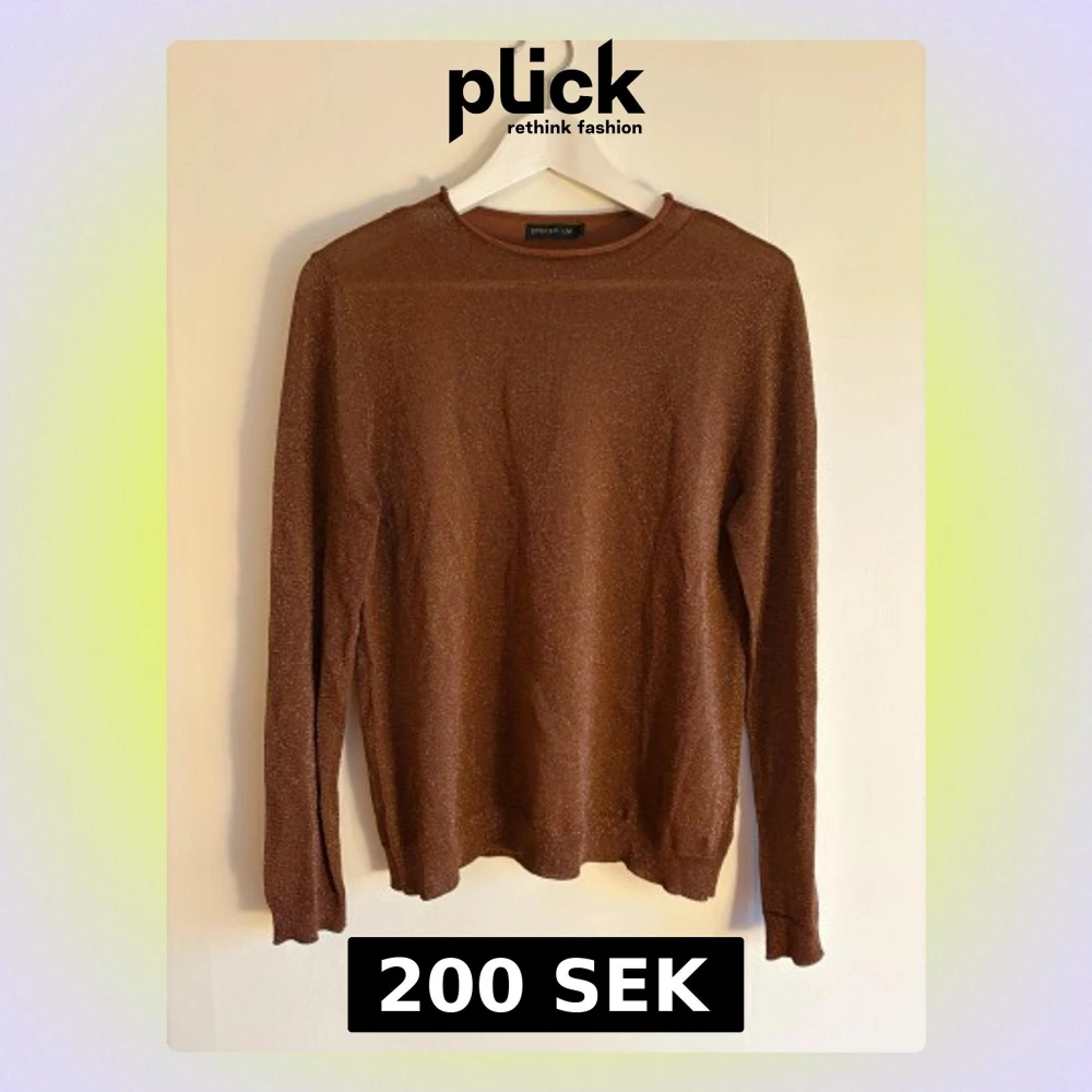 Snygg brun långärmad tröja från Stockh LM, modell Carrie Sweater. Tröjan har ett glittrigt material som ger en cool shimmer-effekt och är i en normal passform. Perfekt för dig som gillar att sticka ut med lite extra shine.