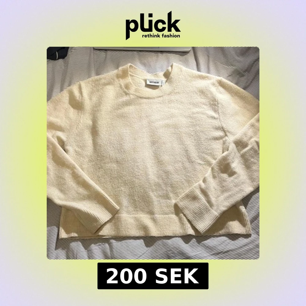 jätte söt stickad tröja från weekday. ljusgul/beige i färg och är kortare i längden, går till midjan. nytt skick och inga defekter.