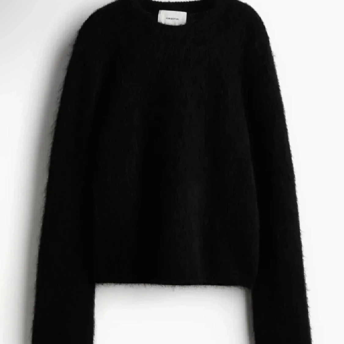 Mysig svart tröja med lång ärm och fluffig textur. Perfekt för kyliga dagar när du vill ha något bekvämt och stilrent. Passar bra till både jeans och kjol.