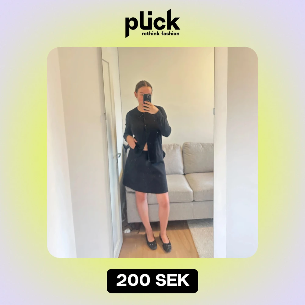 Säljer en stilren svart kofta från GAP i mycket bra skick. Den har långa ärmar och knappar hela vägen fram. Perfekt för både vardag och festliga tillfällen. Passar bra till en kjol eller över en klänning för en elegant look.