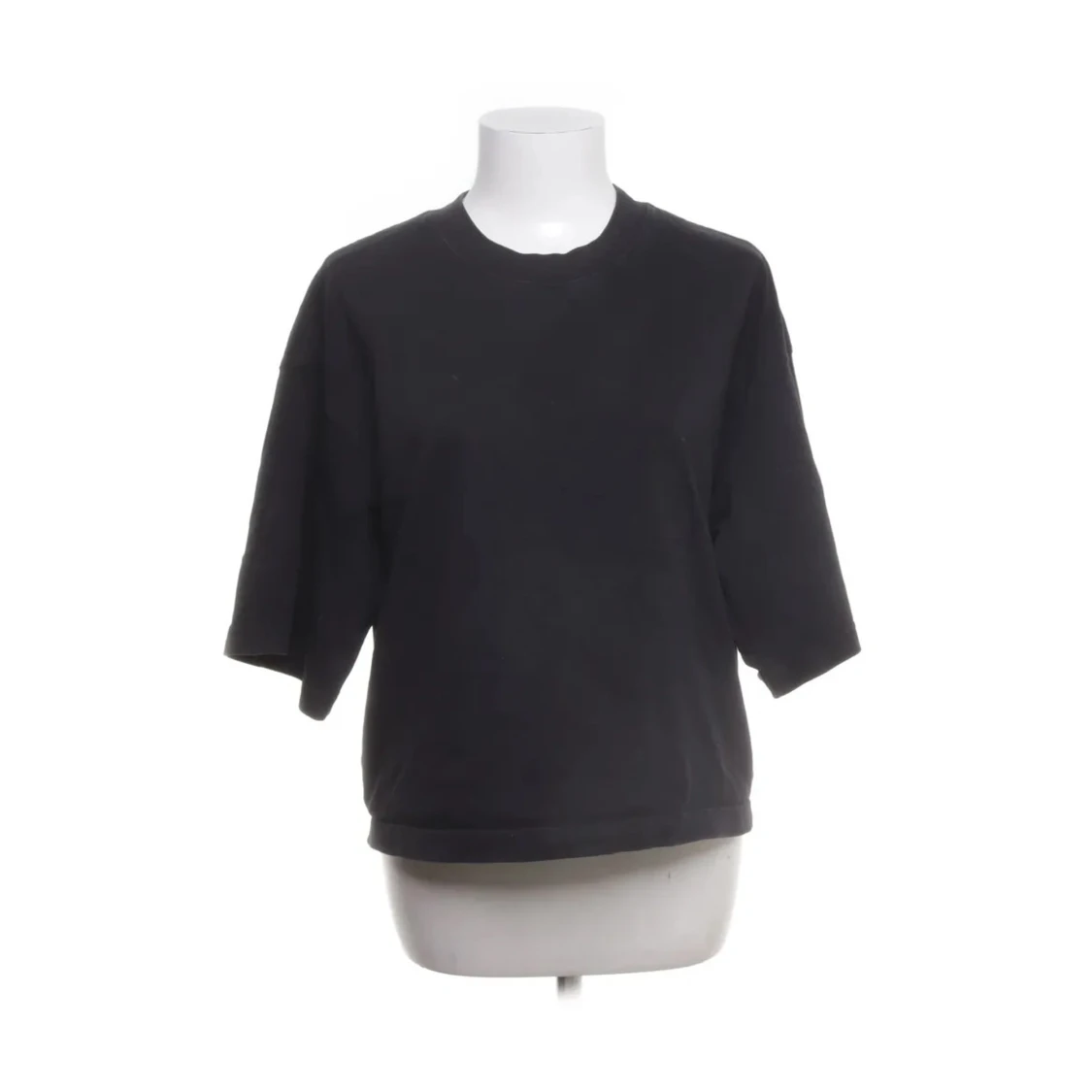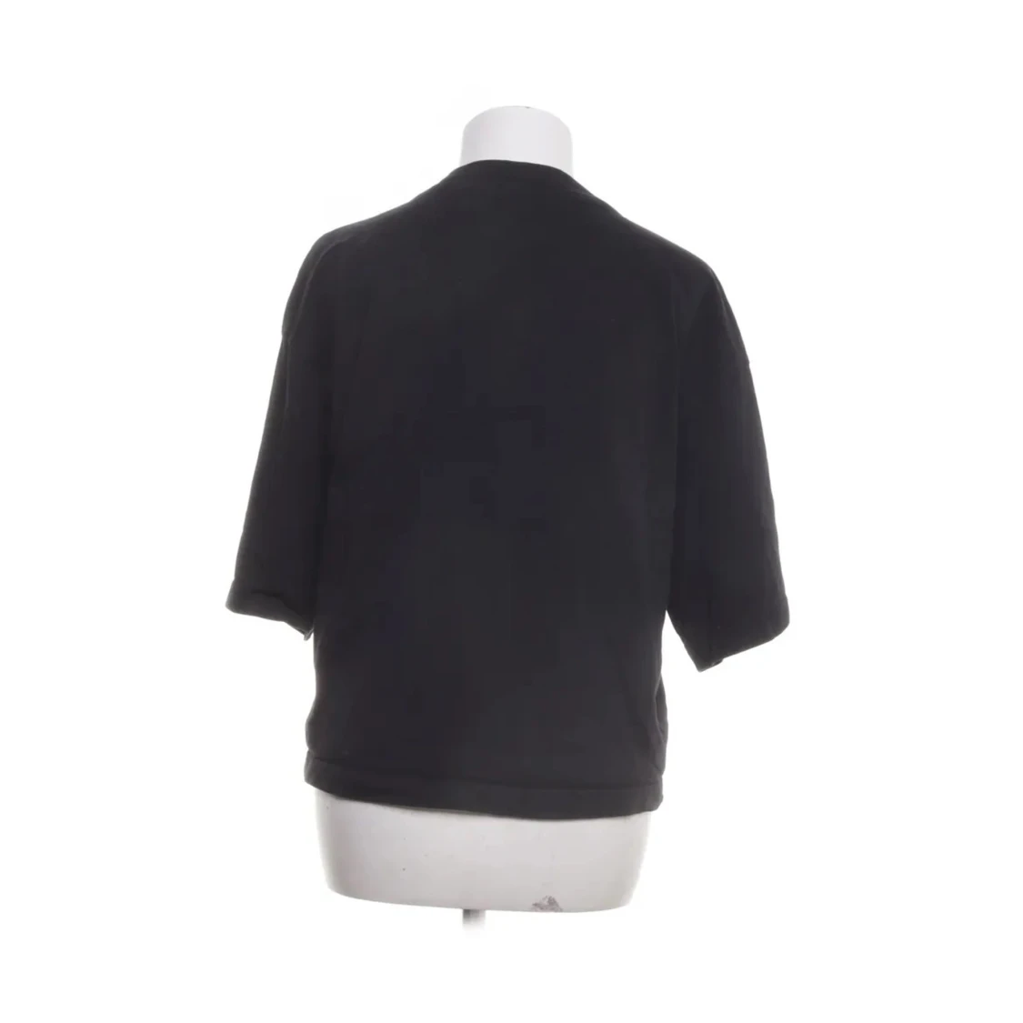 Säljer en stilren svart tröja med korta ärmar. Perfekt för en avslappnad look. Tröjan har en rund halsringning och en bekväm passform.
