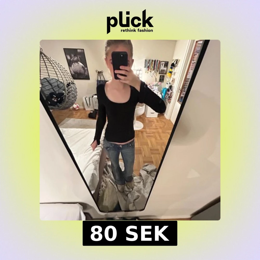 En svart långärmad tight tröja med fin urigning💕 storlek Xs men passar mig som har S/Xs så kan nog passa lite bland annat. Väldigt bekväm och passar lika bra till vardags som till fets💗