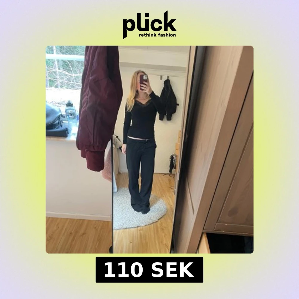 Säljer en elegant svart långärmad topp med v-ringning och spetsdetaljer runt halsen. Den är från H&M men är nästan aldrig använd. Säljer då jag inte får användning av den. Fråga vid funderingar.