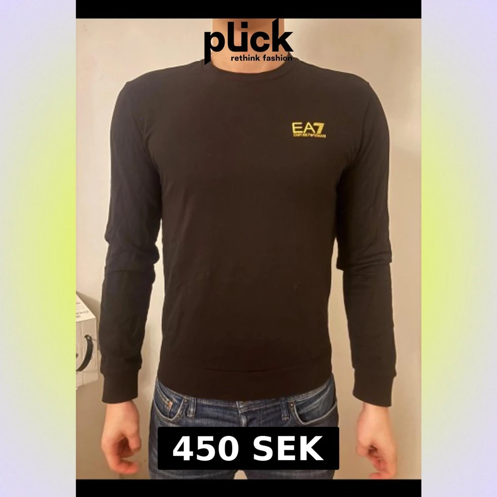 Svart långärmad tröja från EA7 Emporio Armani med gul logga på bröstet och gul randdetalj i nacken. Tröjan har rund hals och är tillverkad i mjuk bomull som sitter snyggt och bekvämt. Perfekt för dig som gillar stilrena och sportiga plagg.
