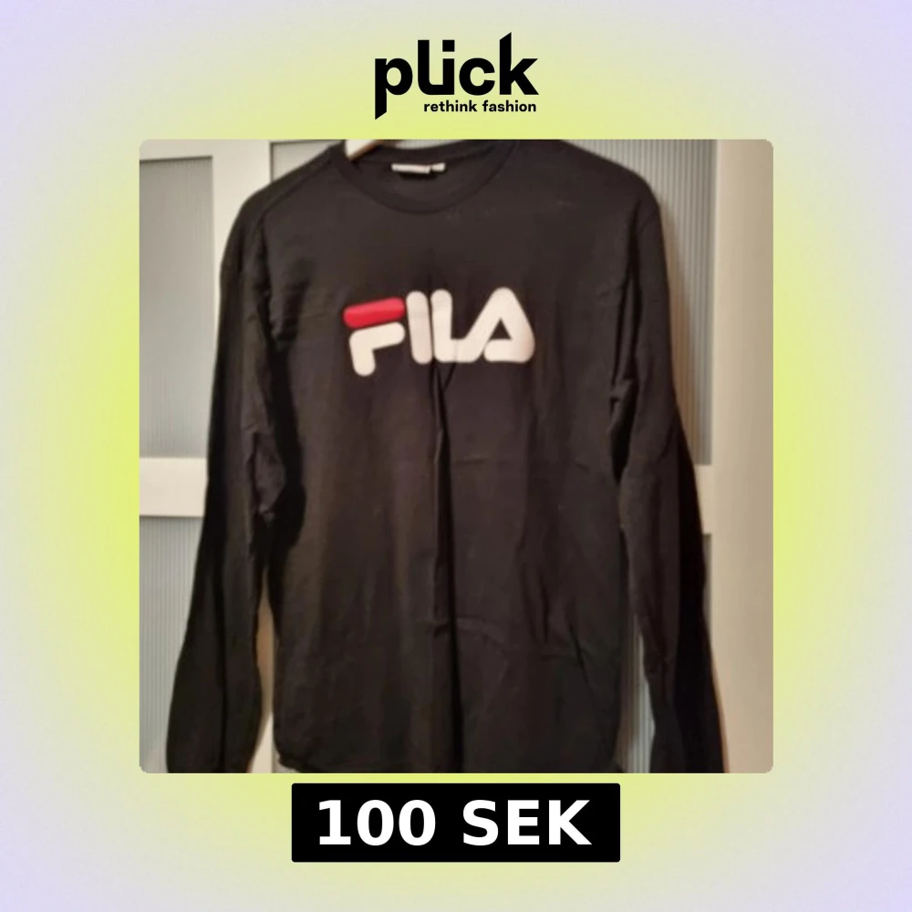 Säljer en svart långärmad tröja från FILA med deras ikoniska logga i vitt och rött på bröstet. Använd 1 gång.