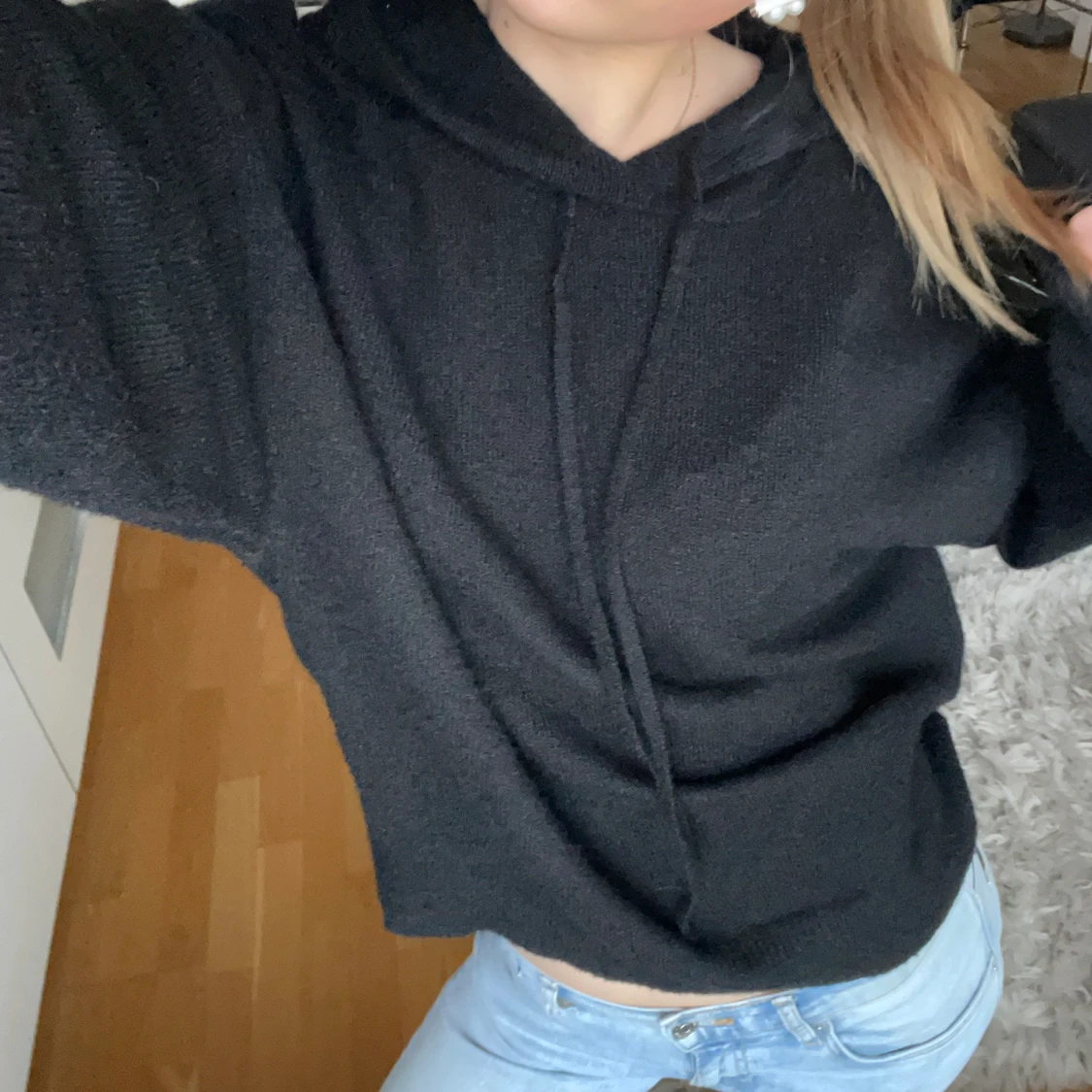 Säljer denna svarta stickade tröjan med luva från Lindex då den inte kommer till användning💕Den är endast använd en gång. Skriv vid intresse!