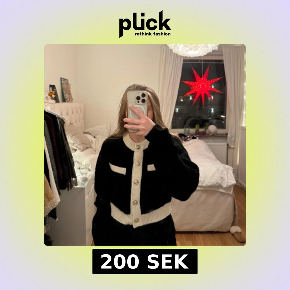 Säljer en stilren svart och vit kofta från H&M. Superskön och mysig med lappen kvar! Perfekt för vintern 🌟(orginalpris: 349 kr)