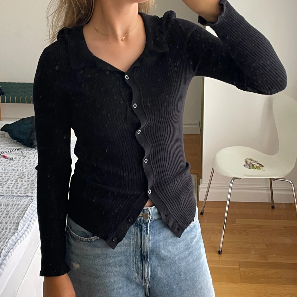 Säljer en snygg svart ribbad kofta från A View. Storlek 38. Väldigt stretchig och skön.
