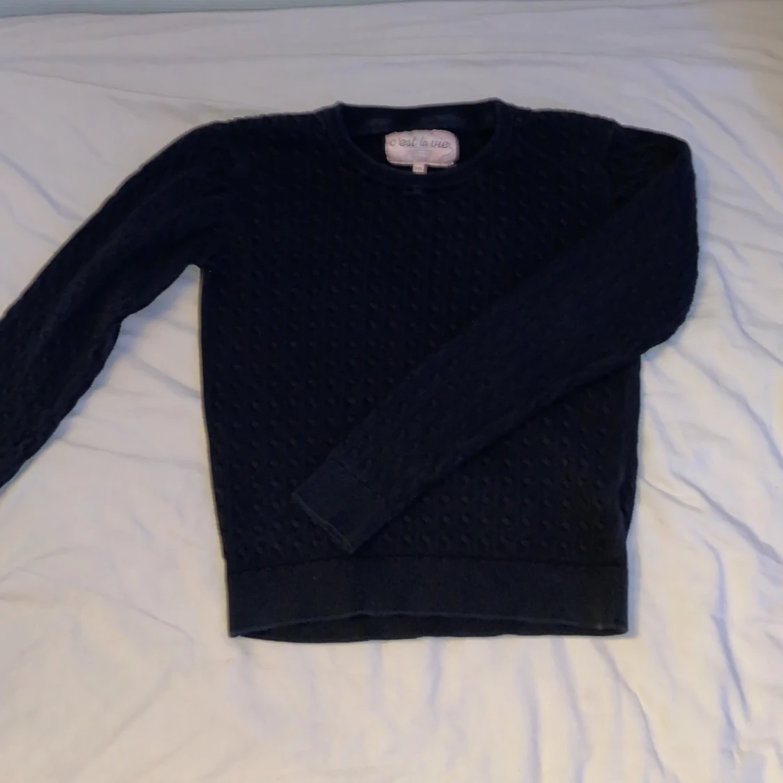 Mysig svart stickad tröja från C'est la vie med diskret strukturmönster. Tröjan har rund halsringning och långa ärmar, perfekt för lager-på-lager under kyliga dagar. Enkel och stilren design som funkar till det mesta.