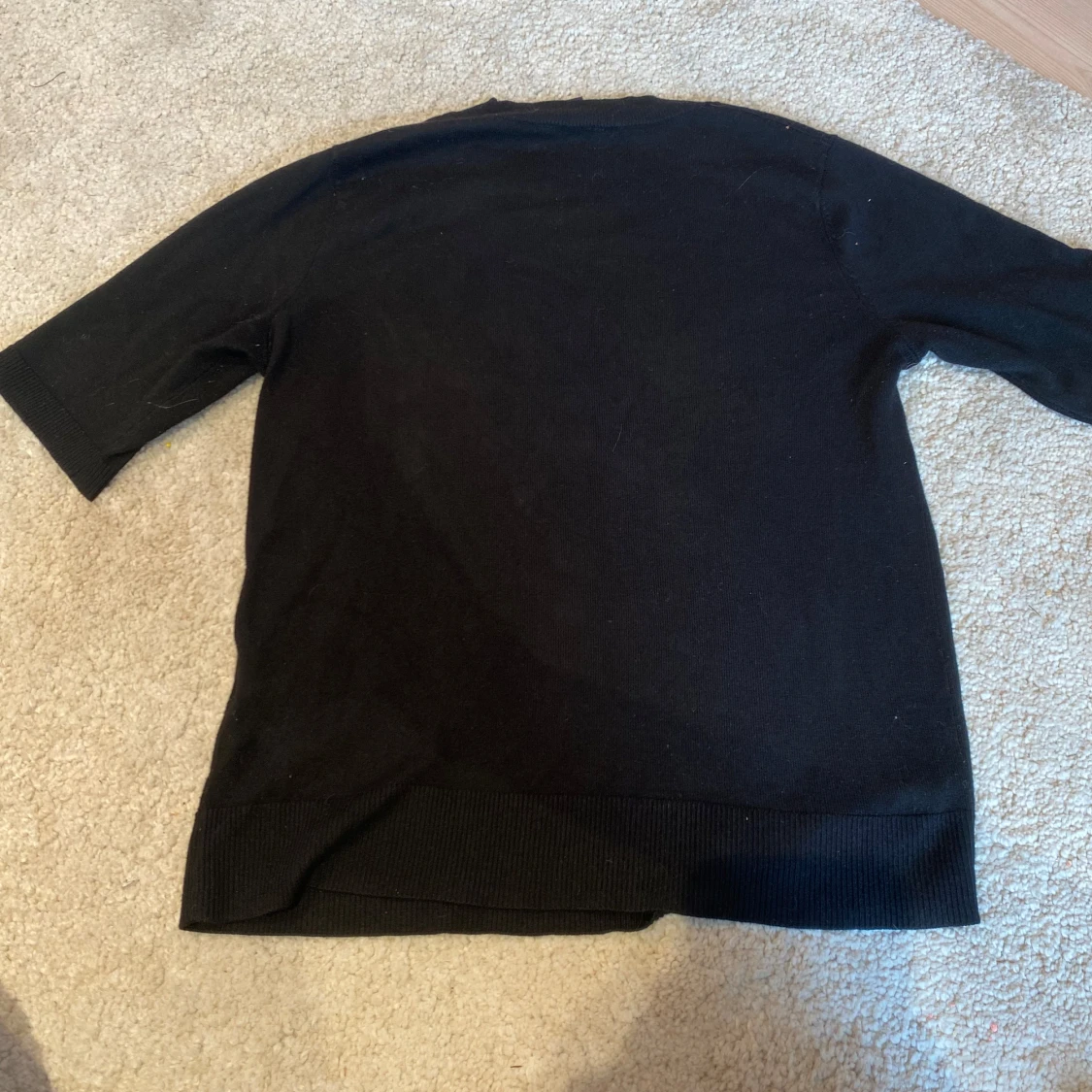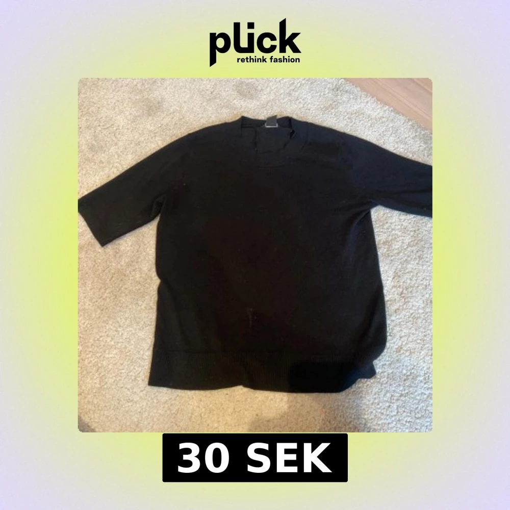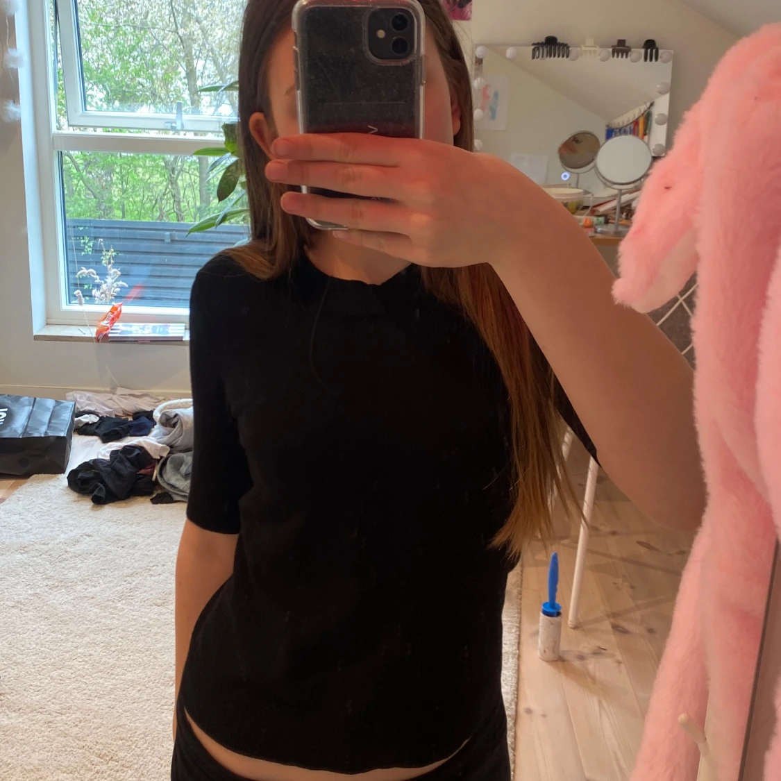 En svart topp från Lindex med ribbad nederkant och halvlånga ärmar. Jag har köpt tröjan secondhand.