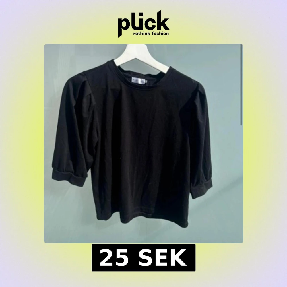 En svart topp med rund halsringning och puffiga trekvartsärmar. Enkel och stilren design som passar till mycket. Tillverkad i mjukt bomullsmaterial för en bekväm känsla.
