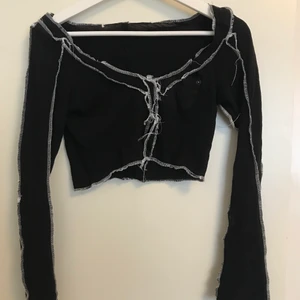 en omsydd tröja med kontrastsömmar, storlek XS, croppad.