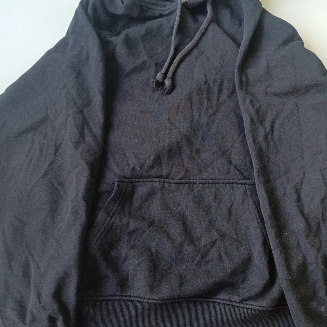 Klassisk Svart hoodie från H&M med luva och snörning. Tröjan har en stor känguruficka framtill och långa ärmar med muddar. Perfekt för dig som gillar en enkel och avslappnad stil. Materialet är mjuk bomullsmix som känns skön mot huden. St XS men den är oversize så passar fram till st M.
