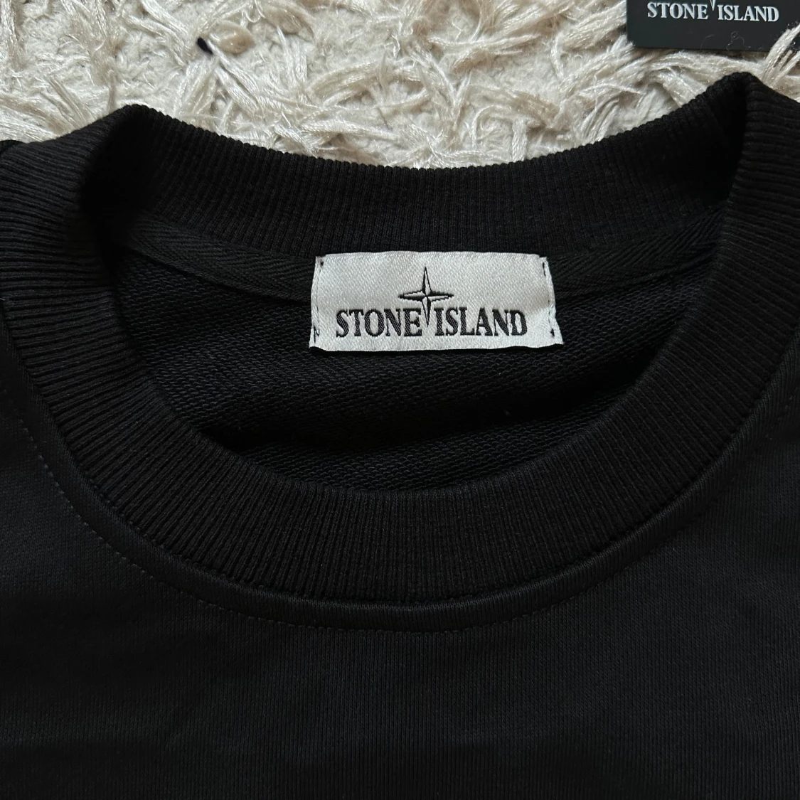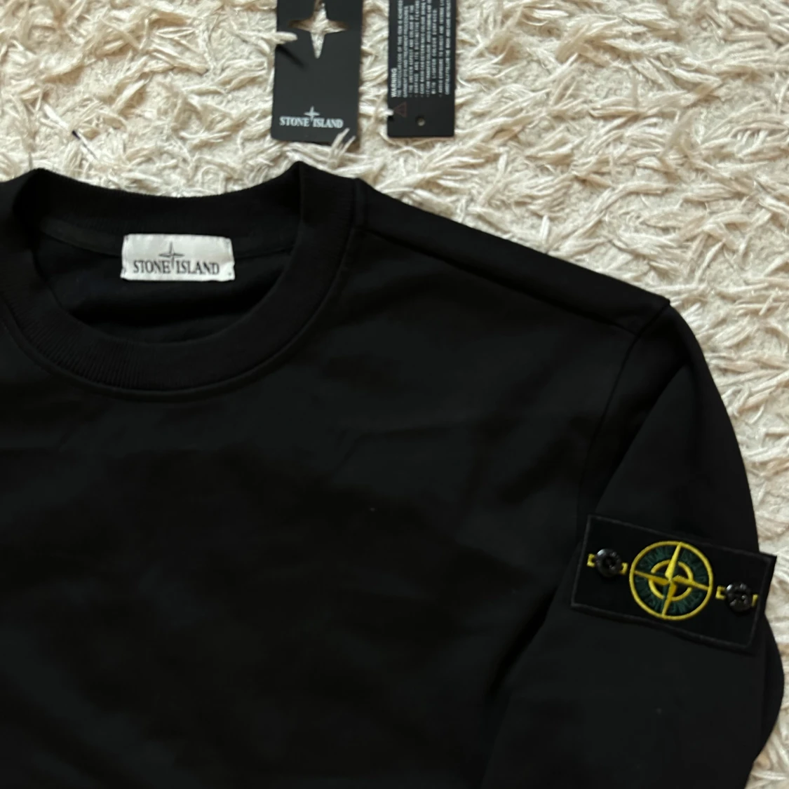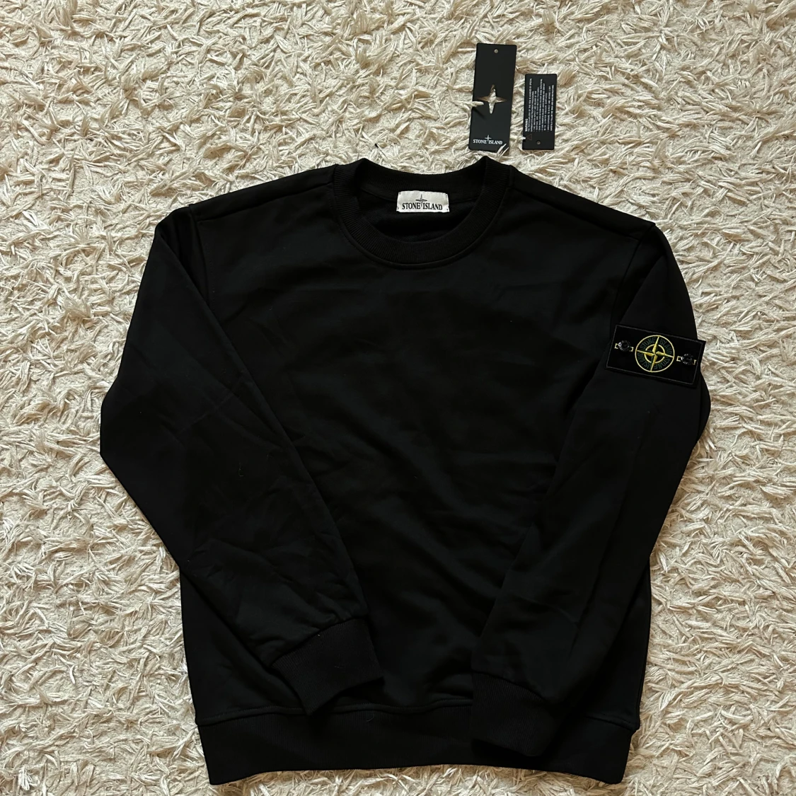 Stone Island- svart sweatshirt med lapparna kvar