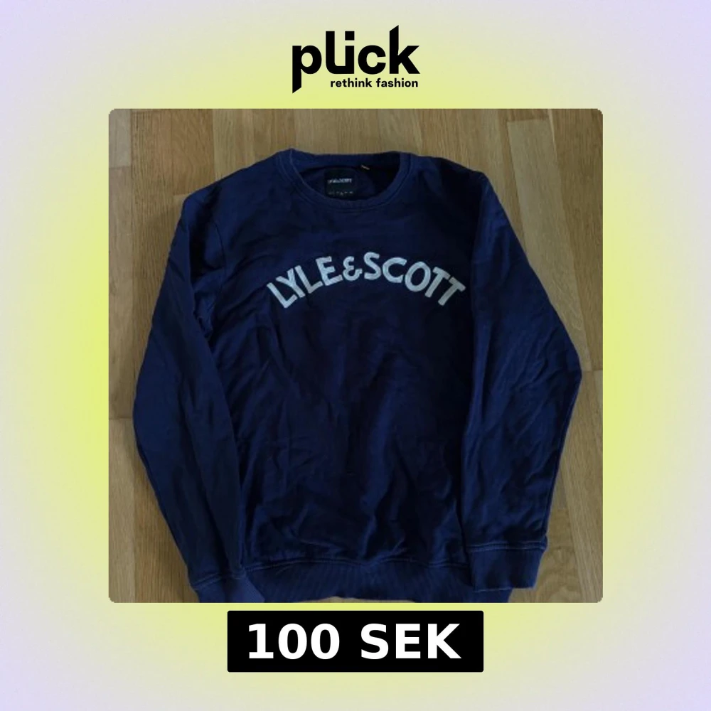 En marinblå sweatshirt från Lyle & Scott med vit logga tryckt över bröstet. Tröjan har rund hals, långa ärmar och ribbade muddar vid ärmslut och nederkant. Tillverkad i mjuk bomull, perfekt för en chill och avslappnad stil. Passar även dem med mindre storlek - jag är vanligtvis xs-m.