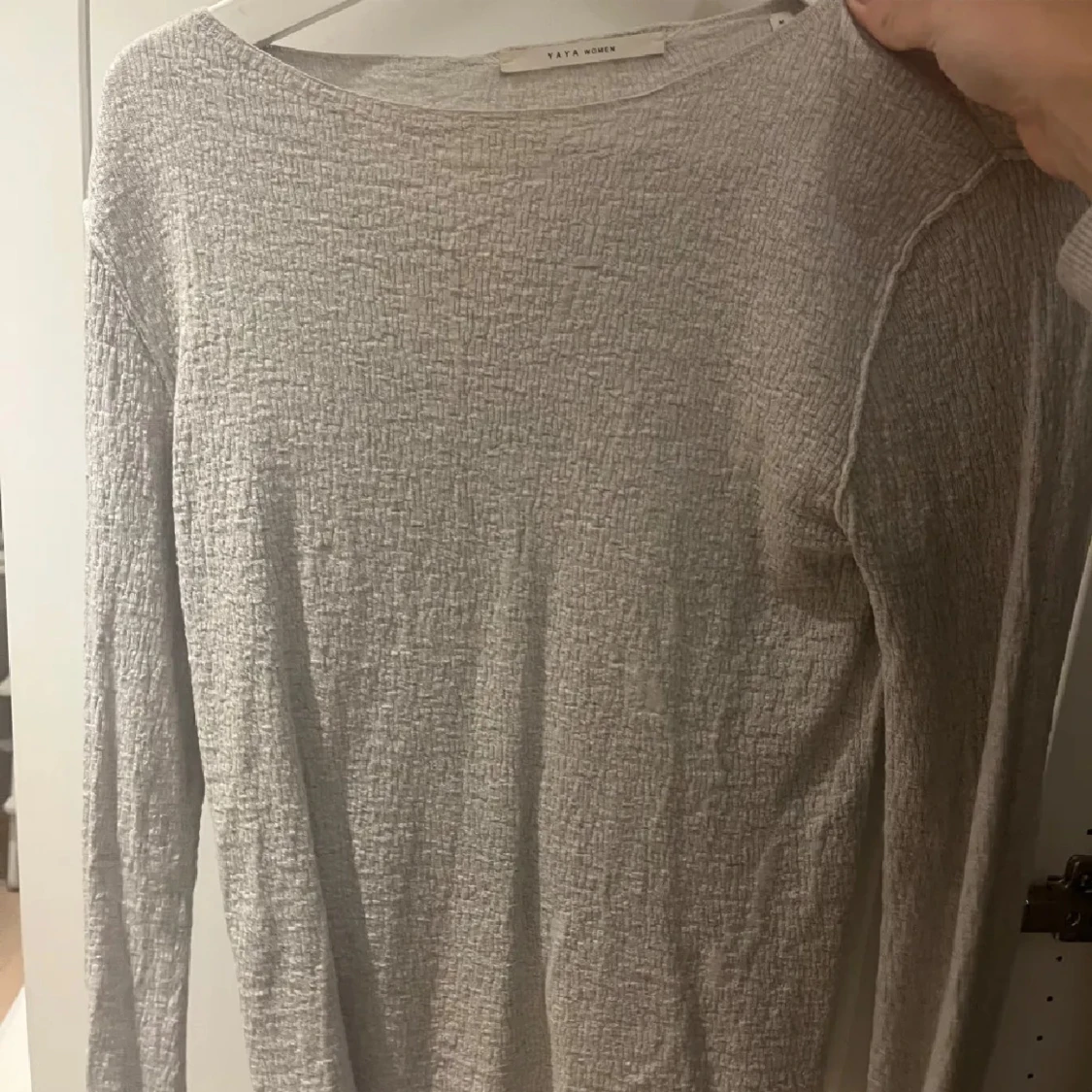 Säljer en stilren beige långärmad topp från YAYA. Toppen har en texturerad yta och en rund halsringning. Perfekt för en enkel och elegant look.