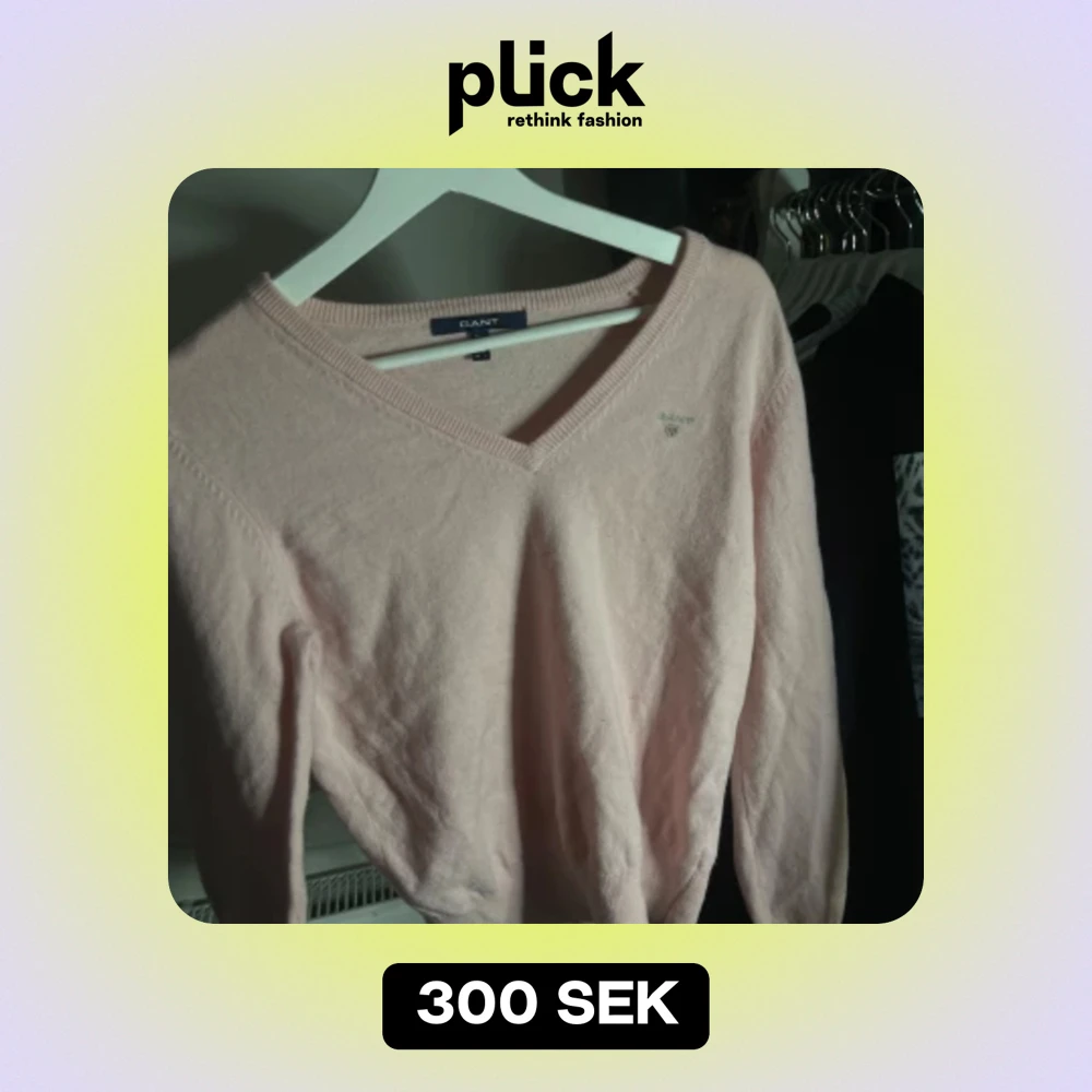 En ljusrosa stickad Gant tröja med V-ringning. Den är precis som nu och använd ett fåtal gånger. Storleken är L men skulle mer säga att den passar XS-M beroende på vilken passform man vill ha. Kom gärna med prisförslag!💕