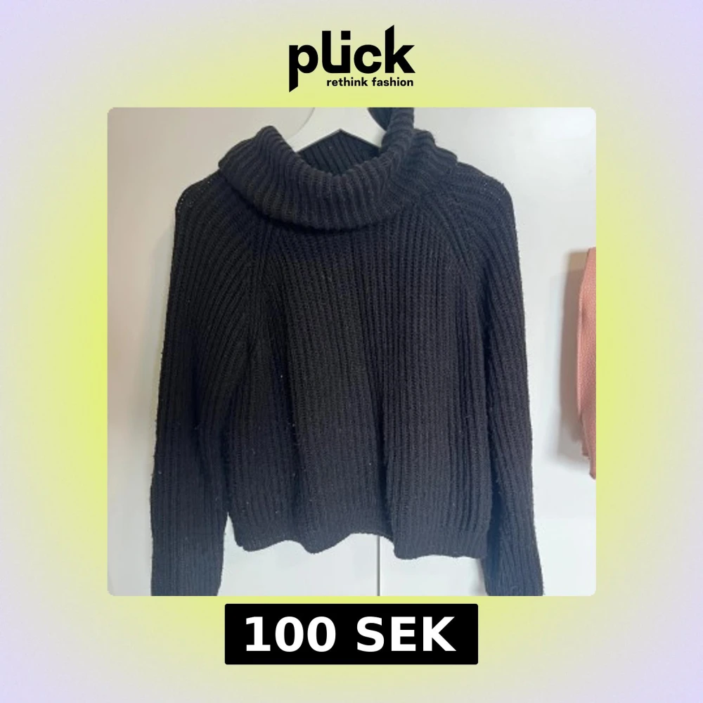 Mysig svart stickad polotröja med grov ribbad struktur och hög polokrage. Perfekt för kyliga dagar och enkel att styla till olika outfits. Tröjan har lång ärm och avslappnad passform.