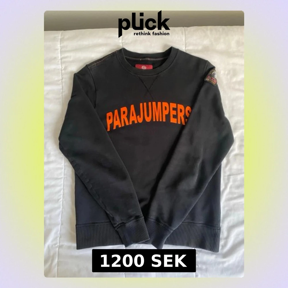 Ett svart parajumper tröja med texten Parajumper i framsidan med storleket L men kan passa som M, om du har några frågor så smsa mig