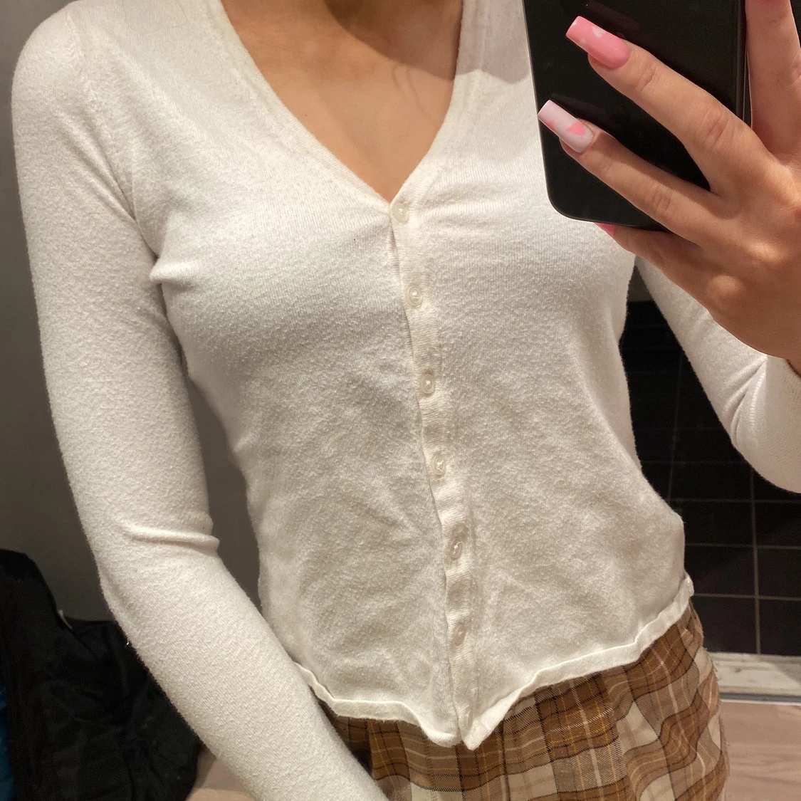 En vit kofta som är köpt ifrån Vero moda för några år sedan och är väl använd. Den är i storlek XS. 50kr+frakt. Skriv vid intresse eller frågor💖❤️