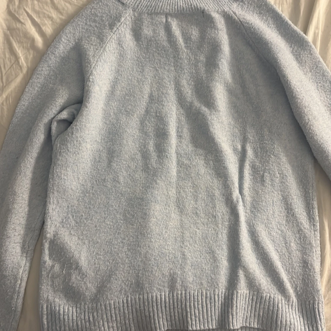 Supermjuk ljusblå stickad tröja från Vero Moda med rund halsringning och ribbade muddar vid ärmslut och nederkant. Perfekt för lager-på-lager och chill dagar. Enkel och stilren design som är lätt att matcha.