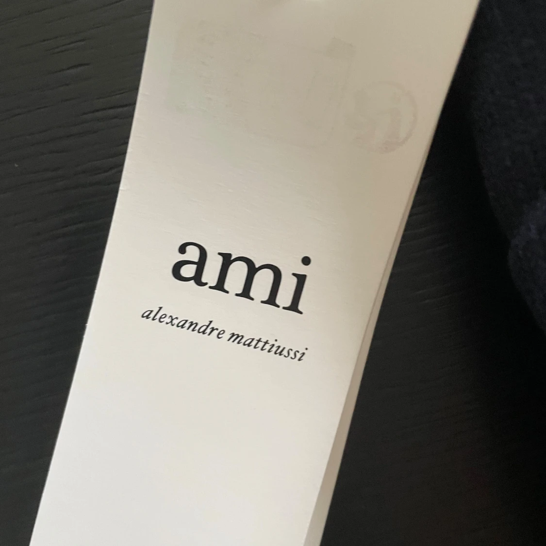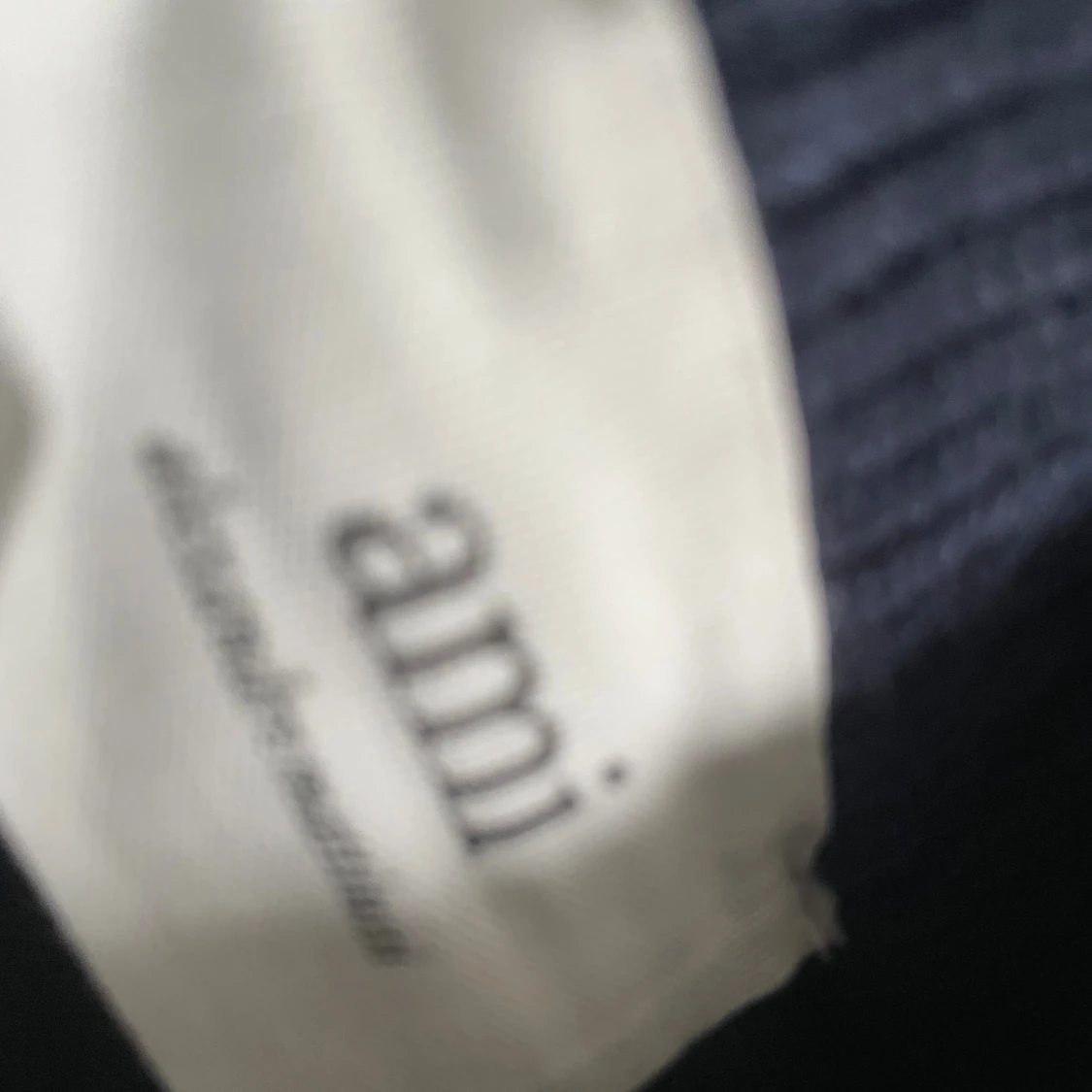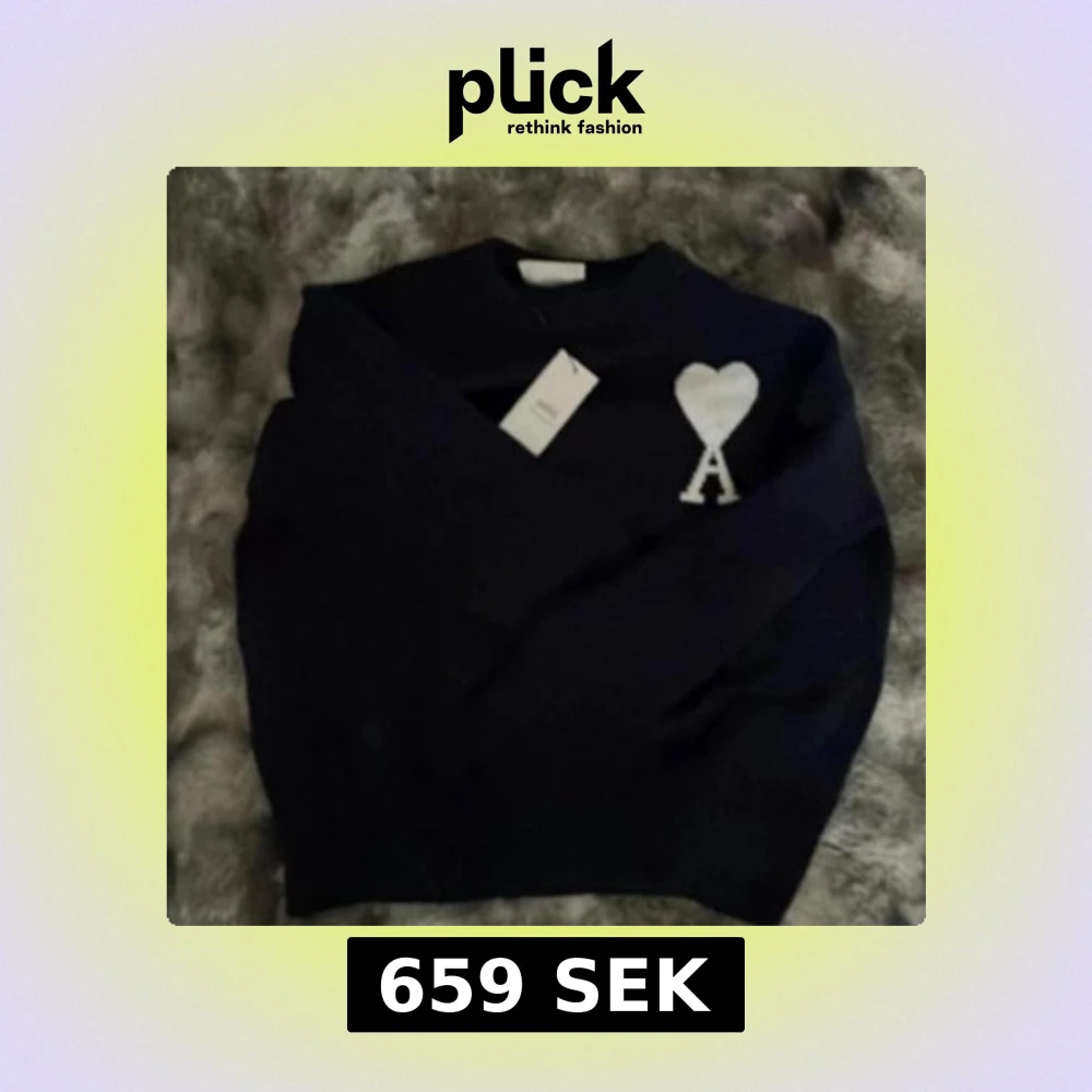 Snygg mörkblå stickad tröja från Ami Alexandre Mattiussi med vit hjärtapplikation och bokstaven A på bröstet. Tröjan har en klassisk rund hals och långärmad design, perfekt för dig som gillar stilrena detaljer och vill ha något som sticker ut.