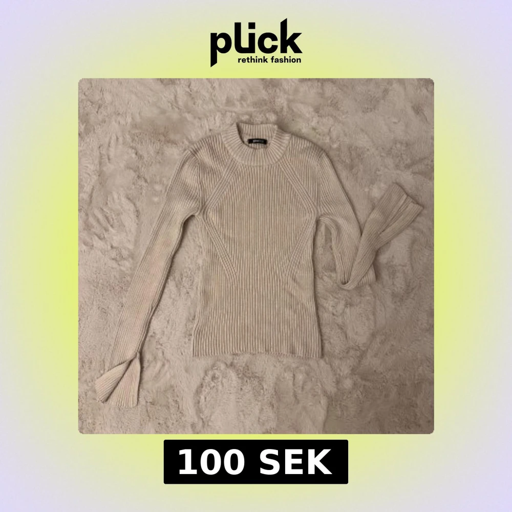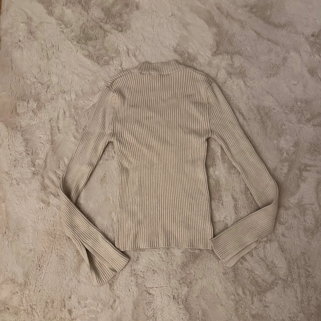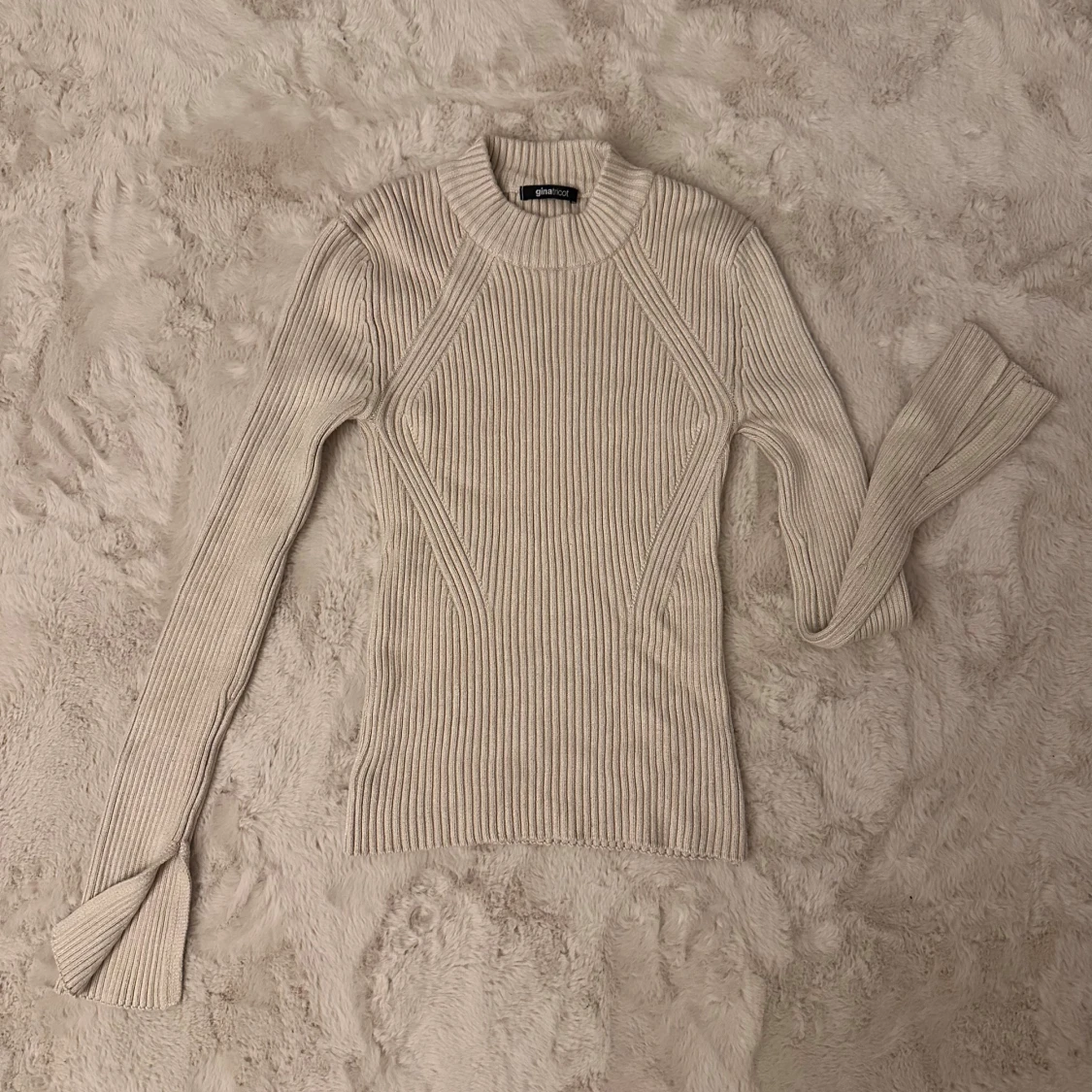 Supersnygg beige ribbad tröja från Gina Tricot med ribbad struktur och figurnära passform. Tröjan har långa ärmar och en högre rund halsringning.
