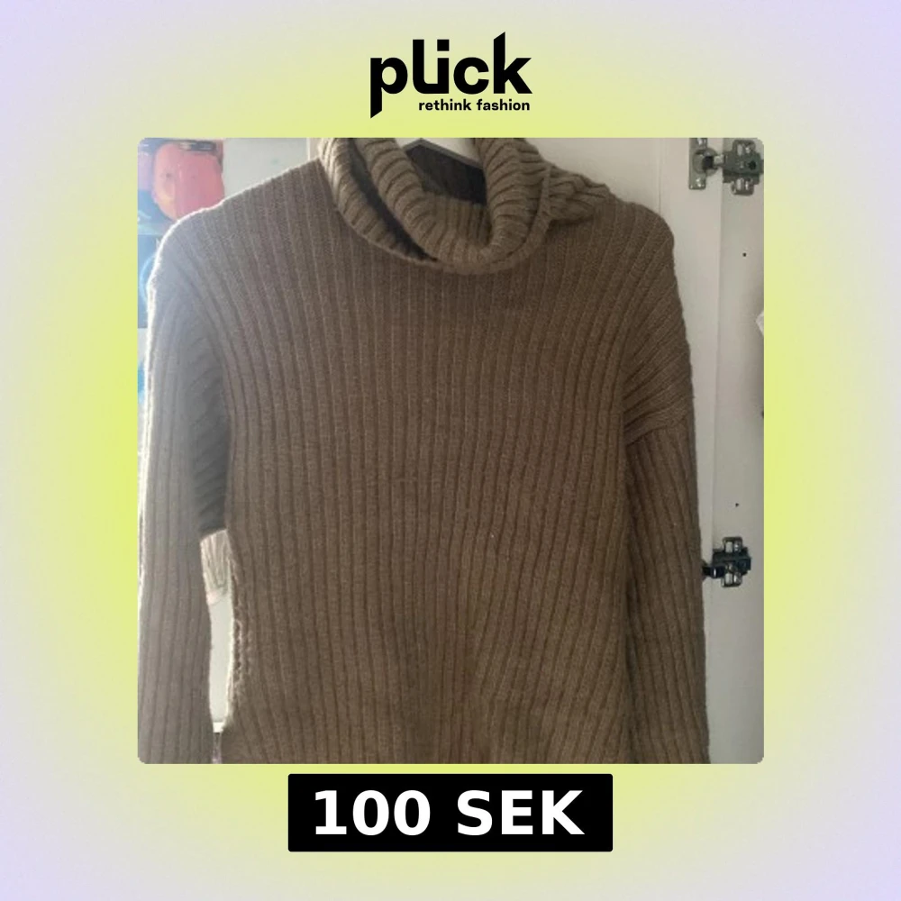 Mysig beige polotröja med ribbat stickat material och lång ärm. Perfekt för kyliga dagar med sin höga krage och klassiska look. Enkel att matcha med jeans eller kjol för en avslappnad stil.