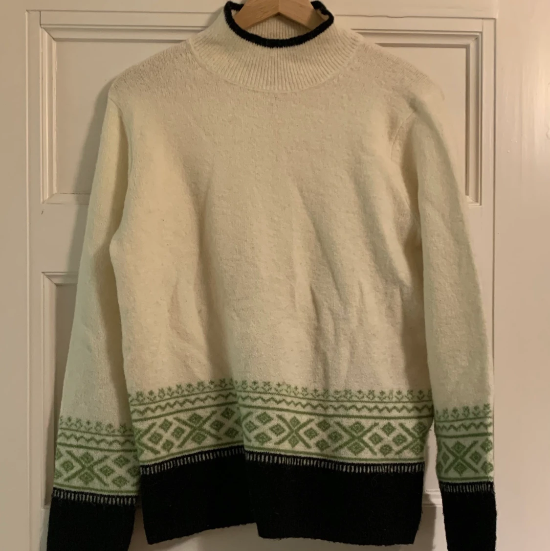En vit tröja med gröna och svarta detaljer ifrån UNIQLO x Ines de la Fressange Paris. Storlek L men liten i storleken. 200kr + frakt (cirka 50kr)