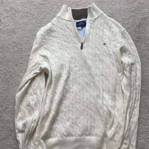 Vit half zip sweatshirt XS/S - Cremefärgad / vit sweatshirt med half zip och hög krage. Tröjan är i storlek S/XS. Vet ej vart den är köpt.  Passformen är mer som S.  Tröjan har några små fläckar men dom syns knappt