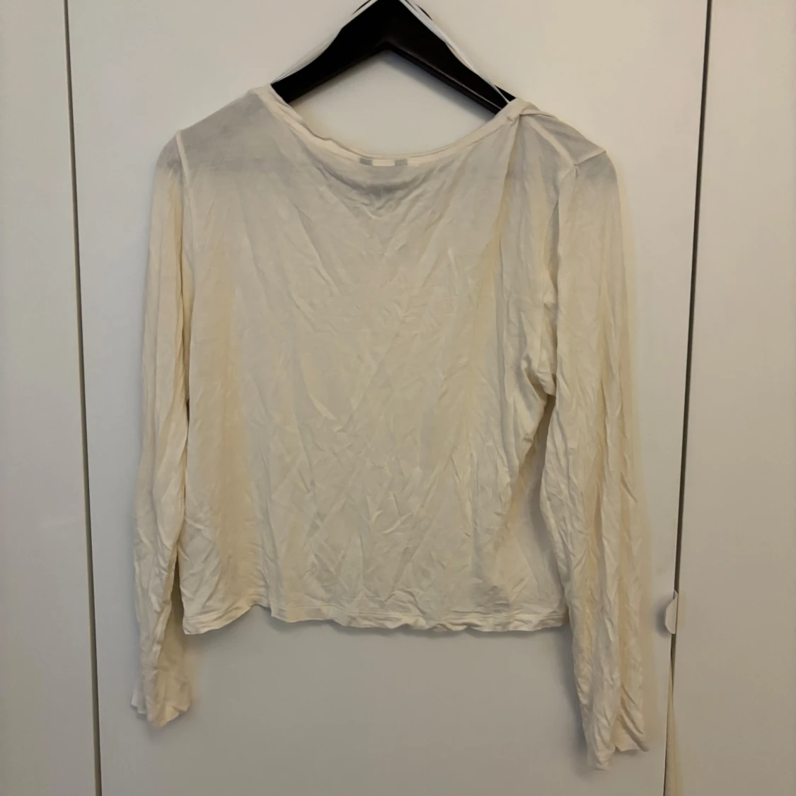 Säljer en enkel och stilren vit långärmad topp från Lindex. Modellen är croppad med rund halsringning och tillverkad i ett mjukt bomullsmaterial.