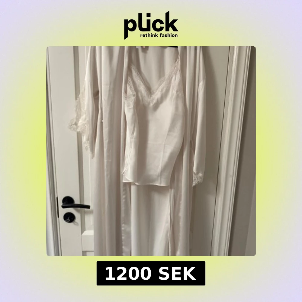 Elegant vit lång morgonrock och Linne set med spets detaljer