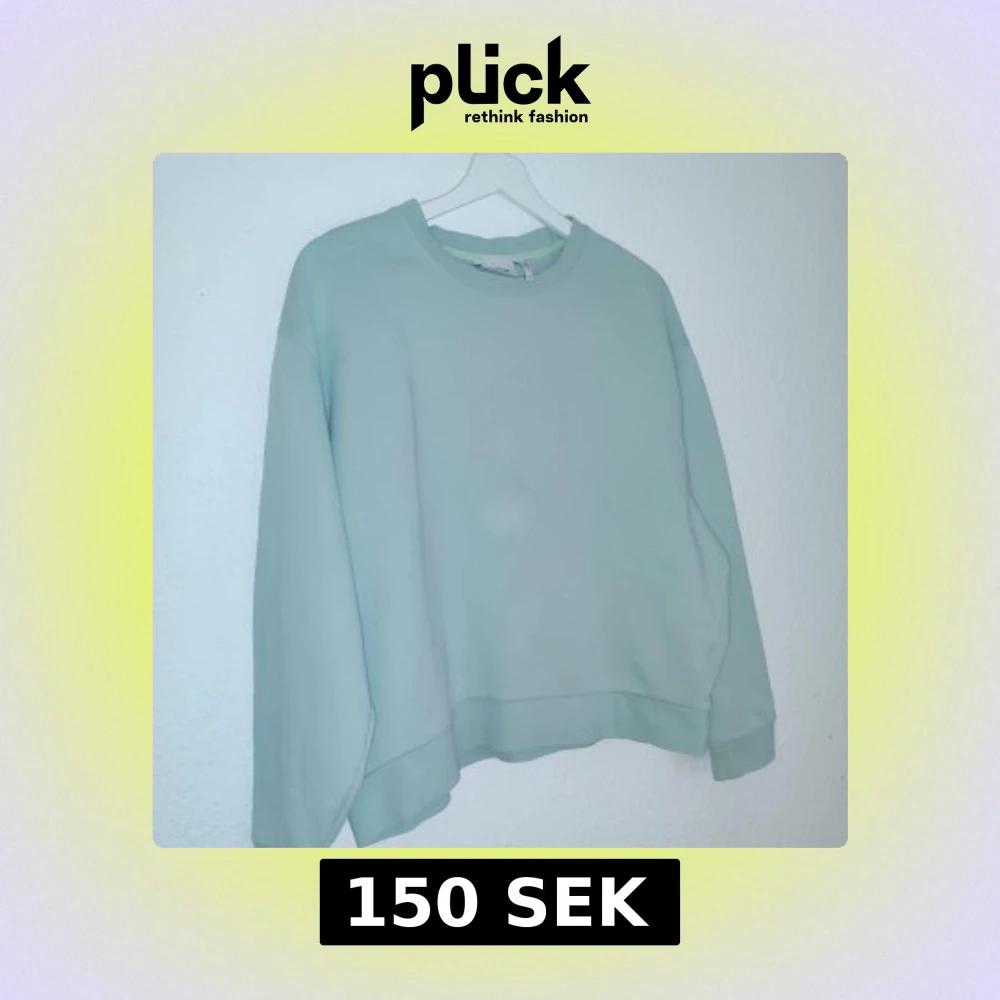 Säljer en stilren ljusgrön sweatshirt från Weekday. Tröjan har en klassisk design med rund hals och långa ärmar. Perfekt för en avslappnad look. Passar bra till jeans eller joggers.