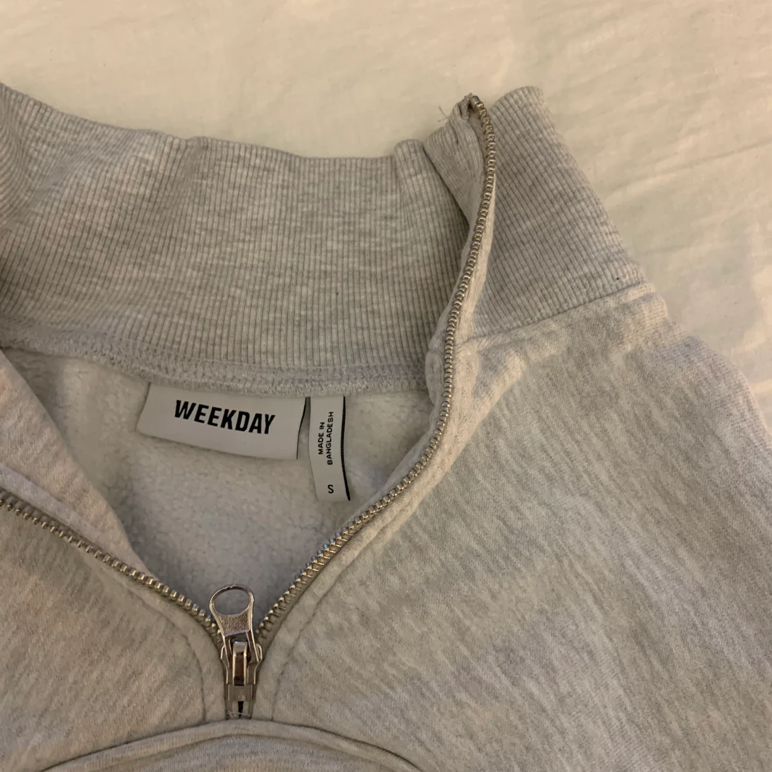 En oanvänd tröja från Weekday, ljusgrå. Lite croppad.